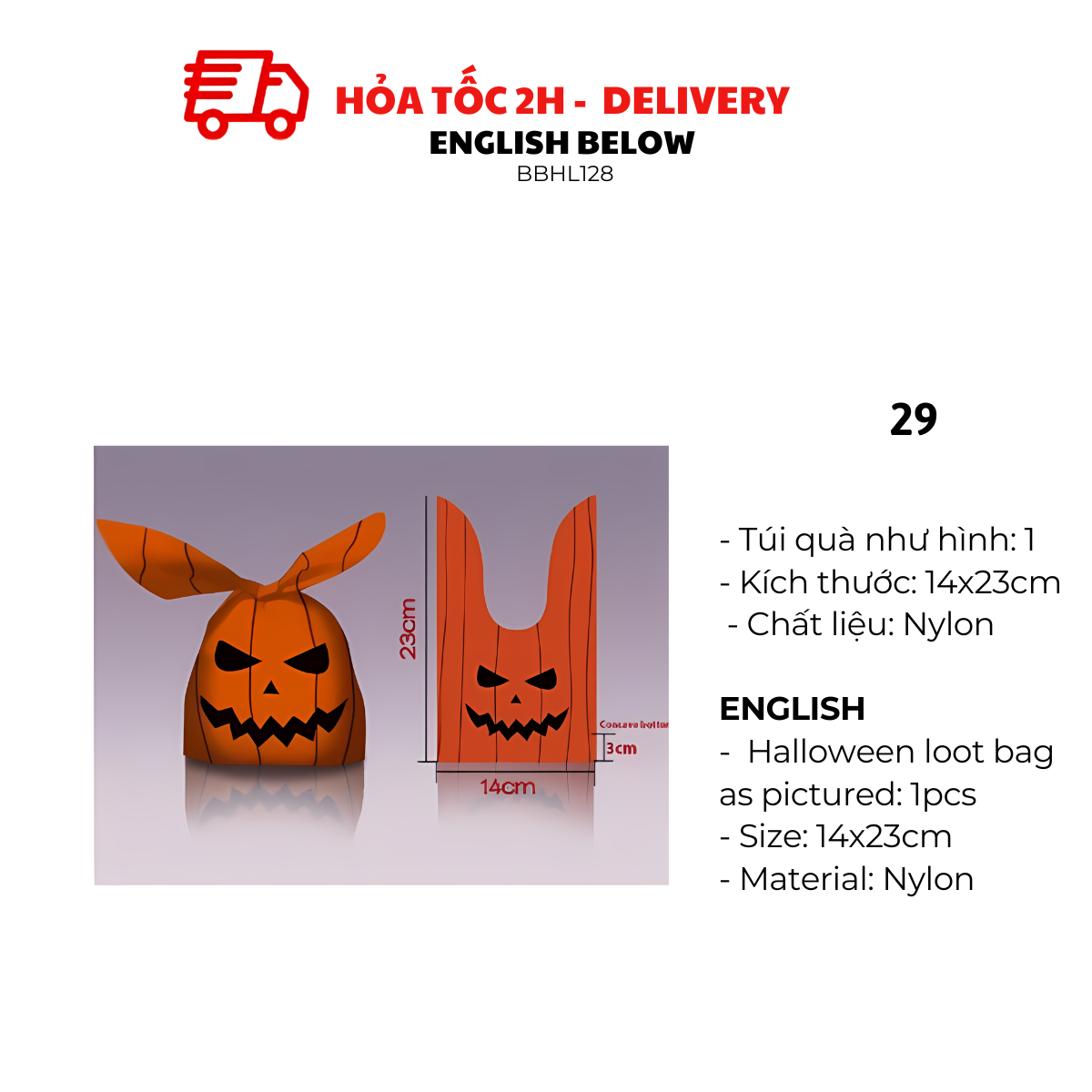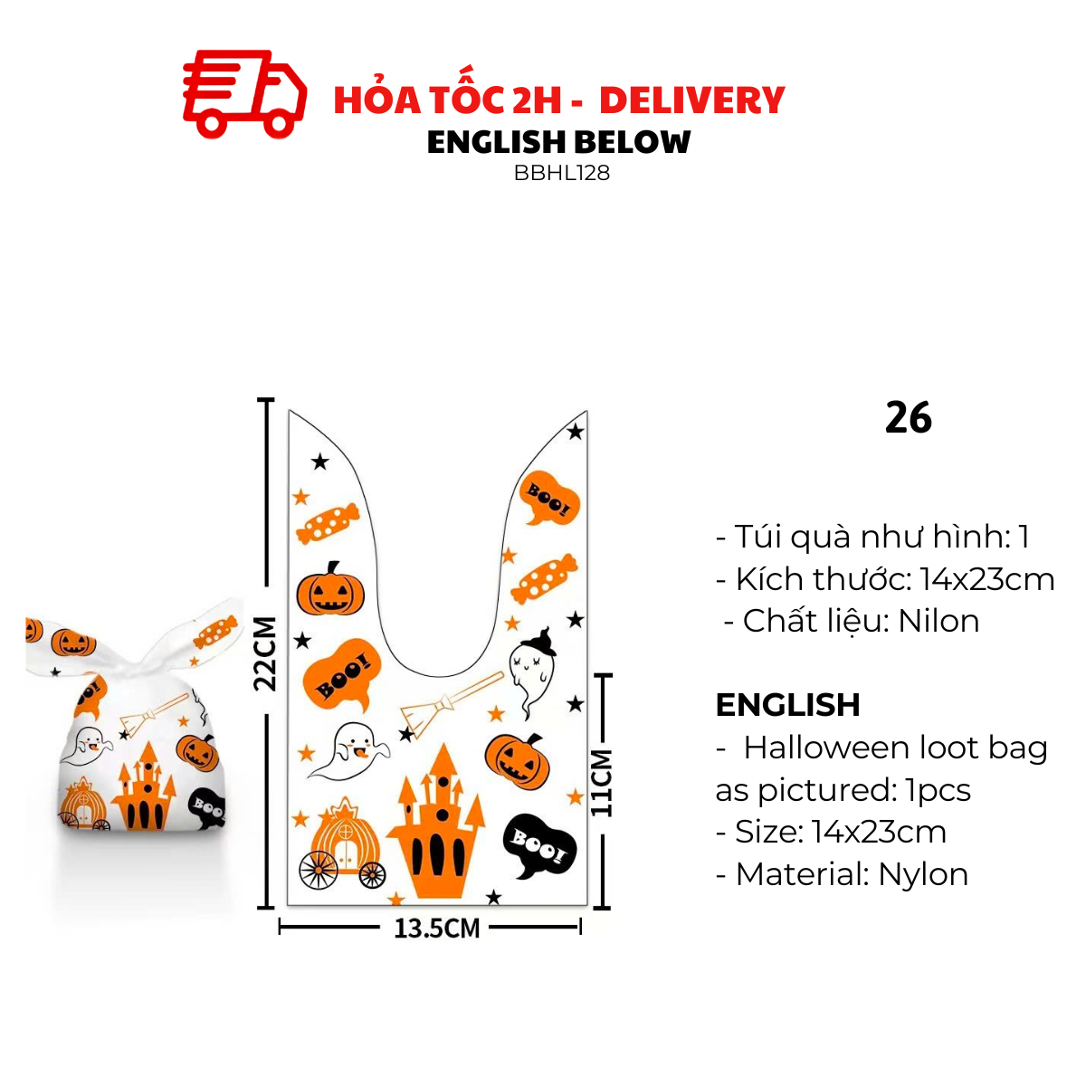 - Halloween loot bag as pictured: 1pcs