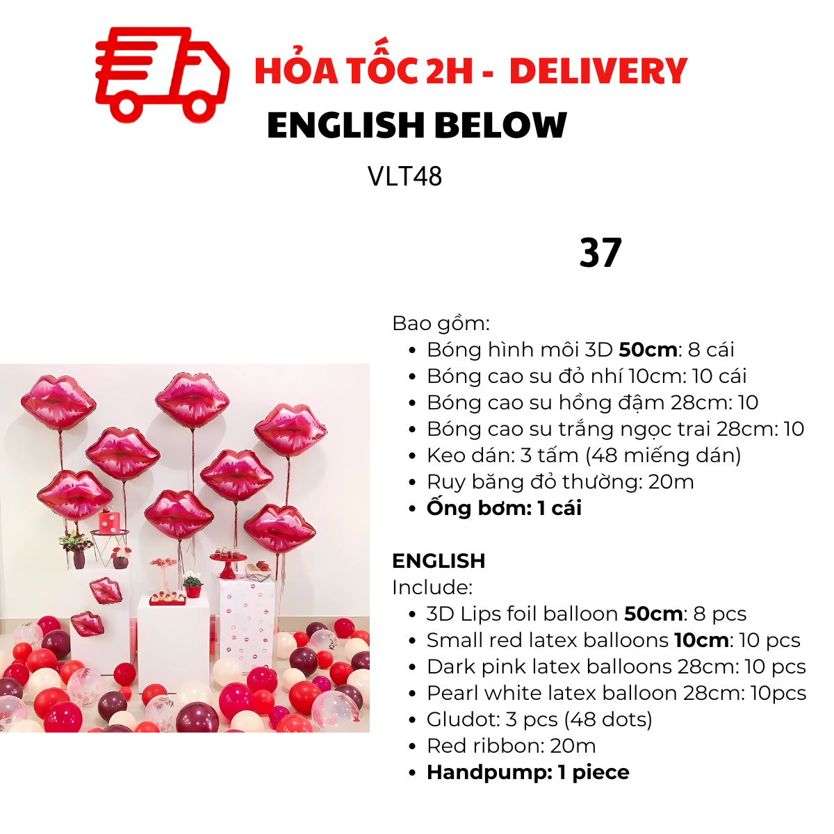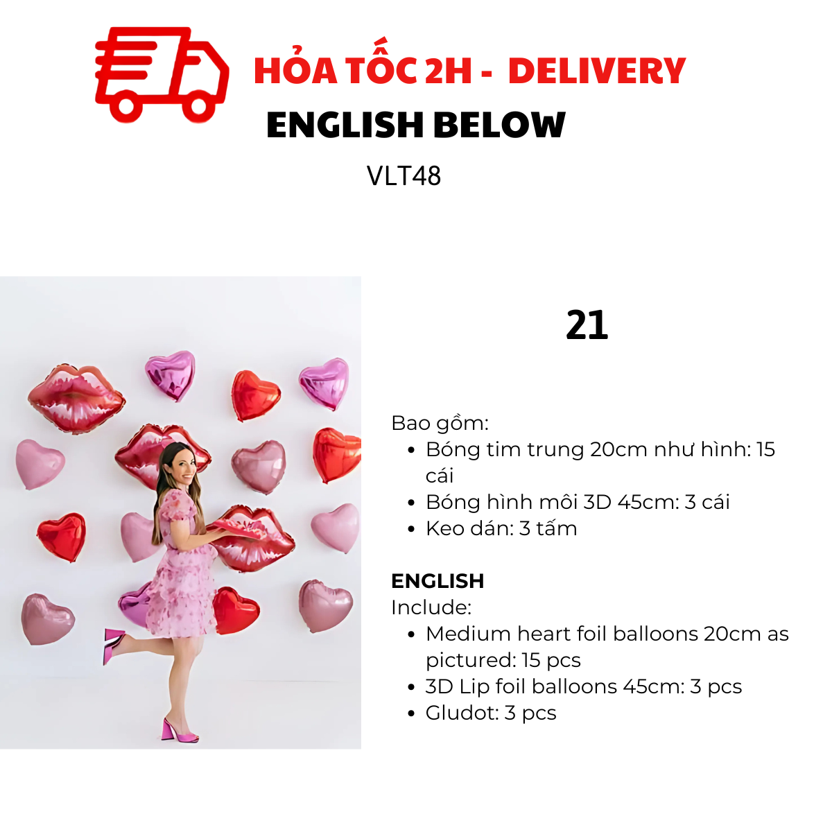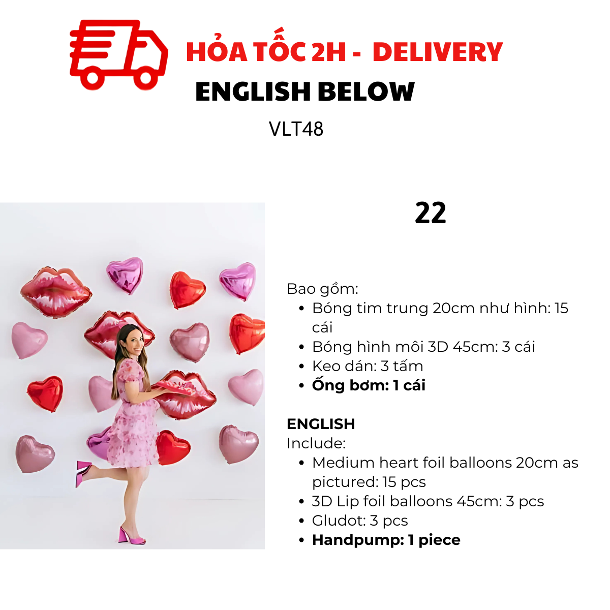 - 3D Lips foil balloon 50cm: 8 pcs
