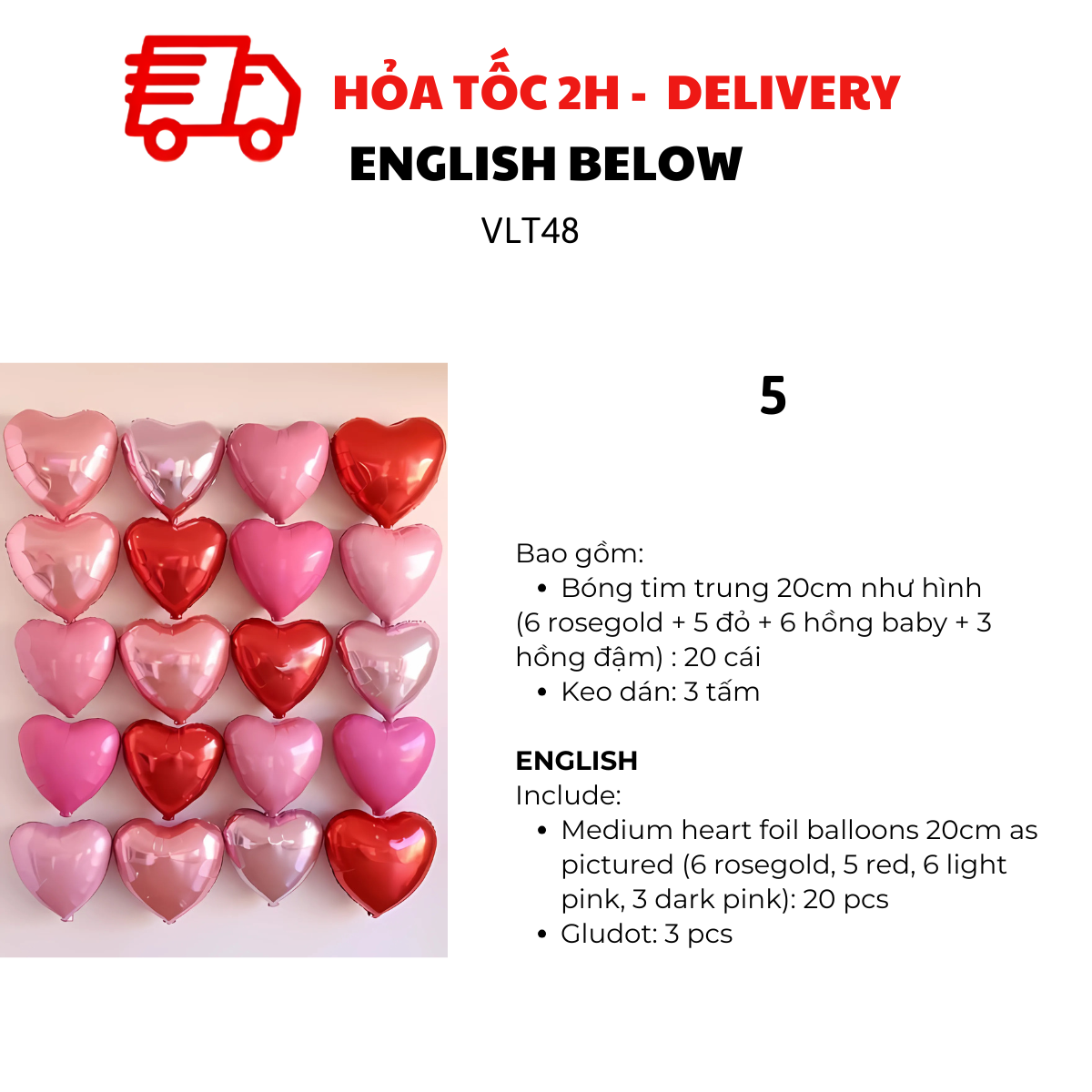 Bóng tim to 40cm như hình: 10 cái