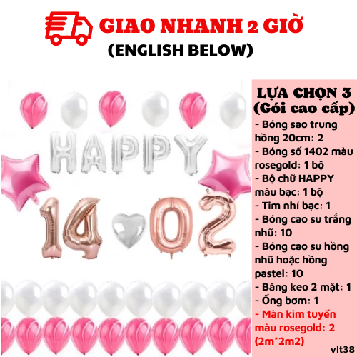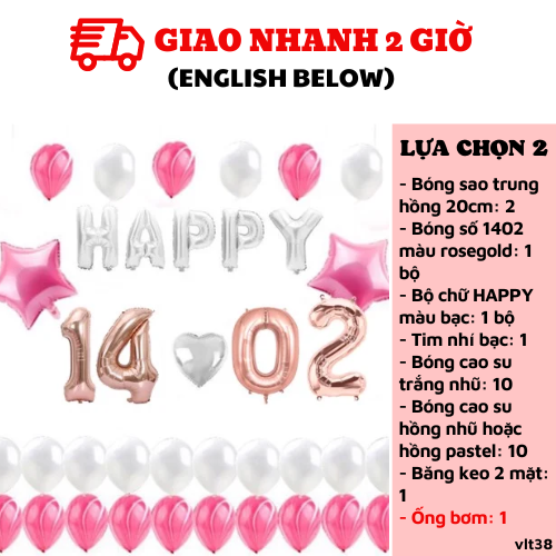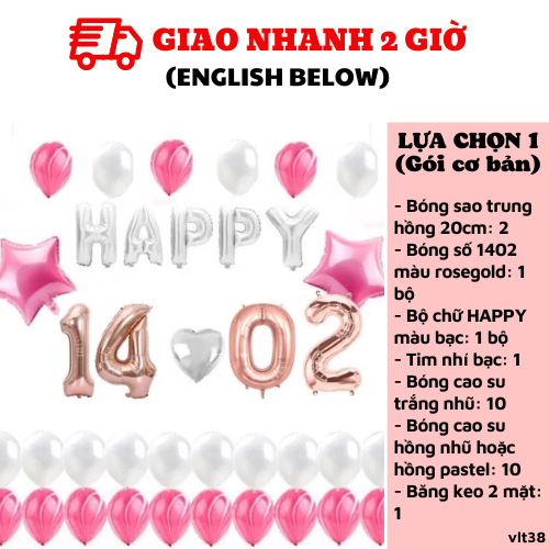 BỘ BÓNG 14.02 TRANG TRÍ VALENTINE MÀU HỒNG VÀ TRẮNG VLT38