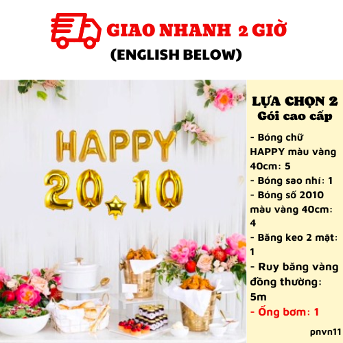 - Bóng chữ HAPPY màu vàng 40cm: 5/ bóng sao nhí: 1