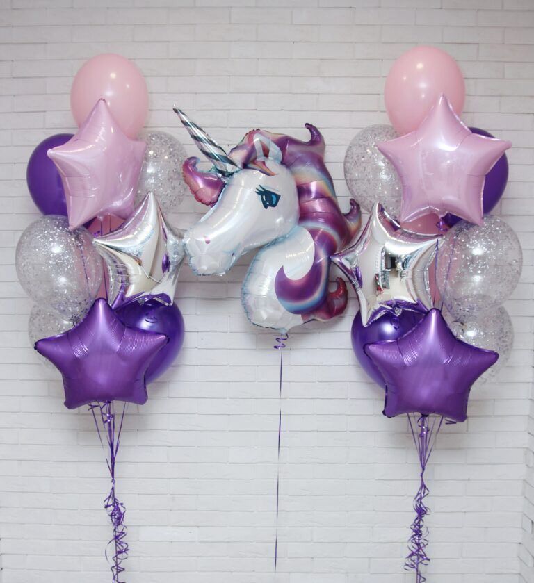 Nếu bơm bay helium: 905k giảm còn 762k, bao gồm: 2 chùm bóng bay như hình + 1 Unicorn trung không bay (giành cho khách tại HCM), nếu Unicorn bay y hình thêm 300k