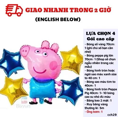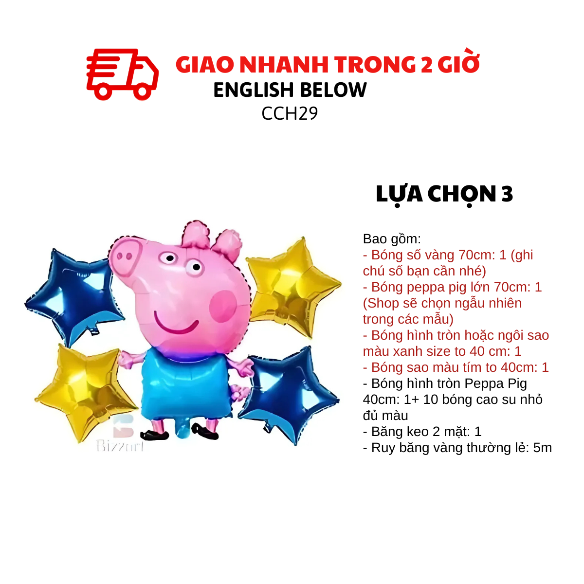 - Bóng peppa pig lớn 70cm: 1 (Shop sẽ chọn ngẫu nhiên trong các mẫu)