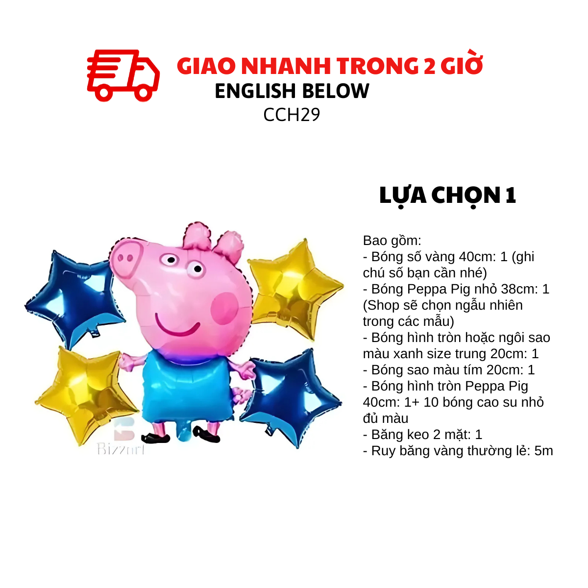 - Bóng Peppa Pig nhỏ 38cm: 1 (Shop sẽ chọn ngẫu nhiên trong các mẫu)