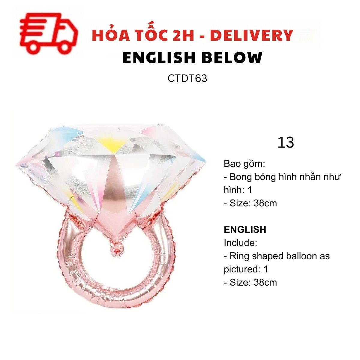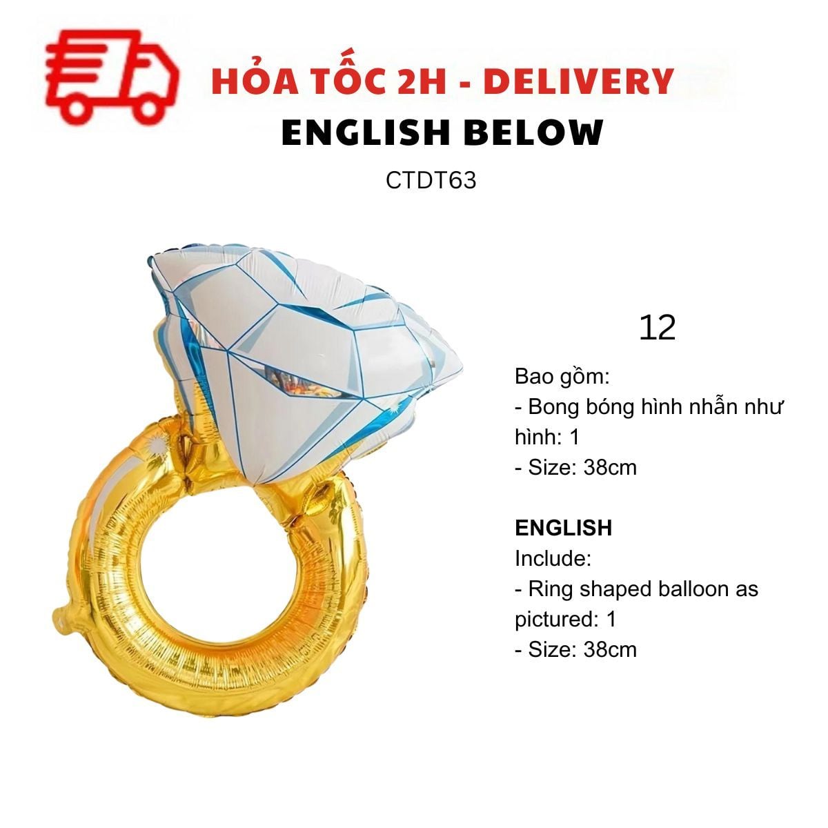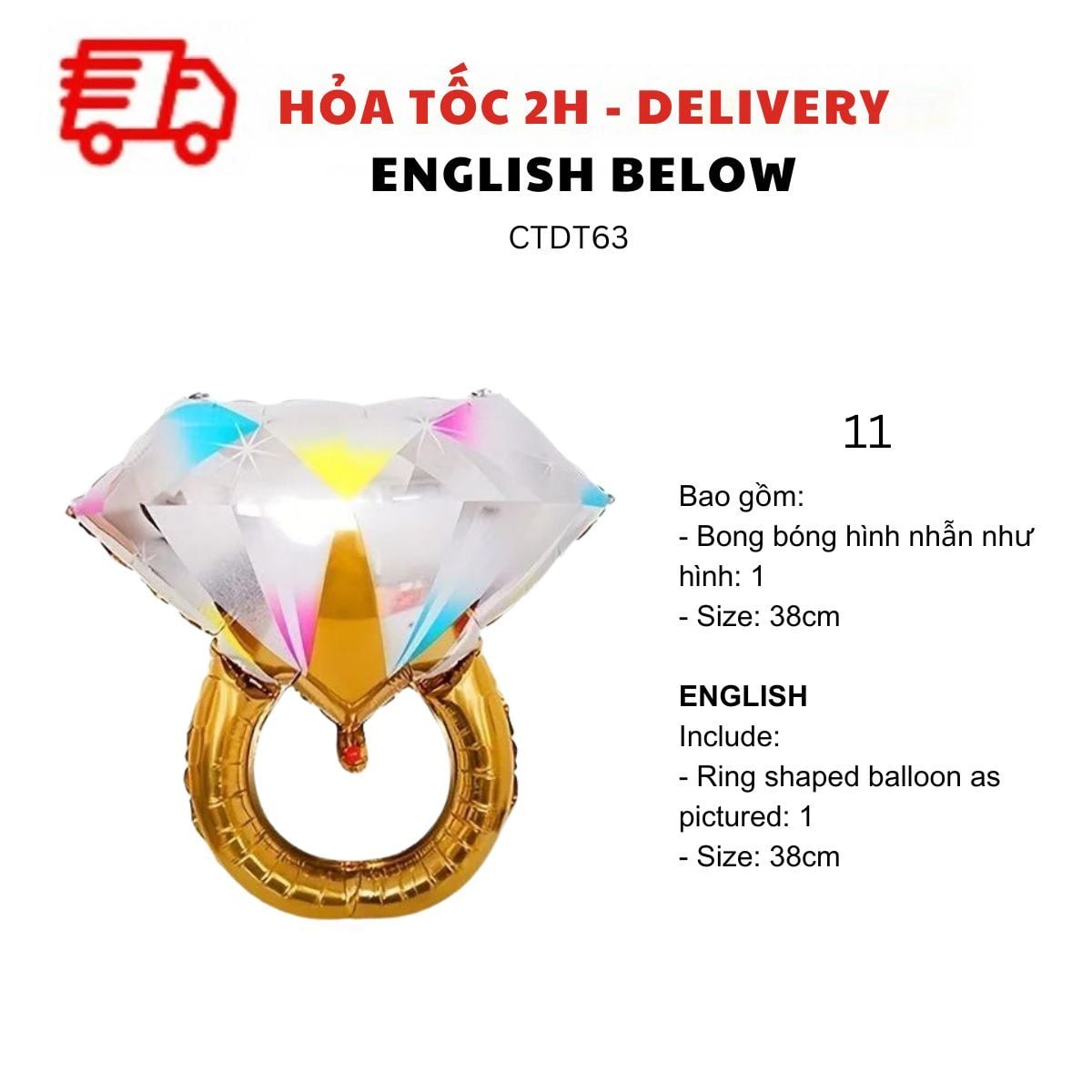- Bong bóng hình nhẫn như hình size 38cm: 1