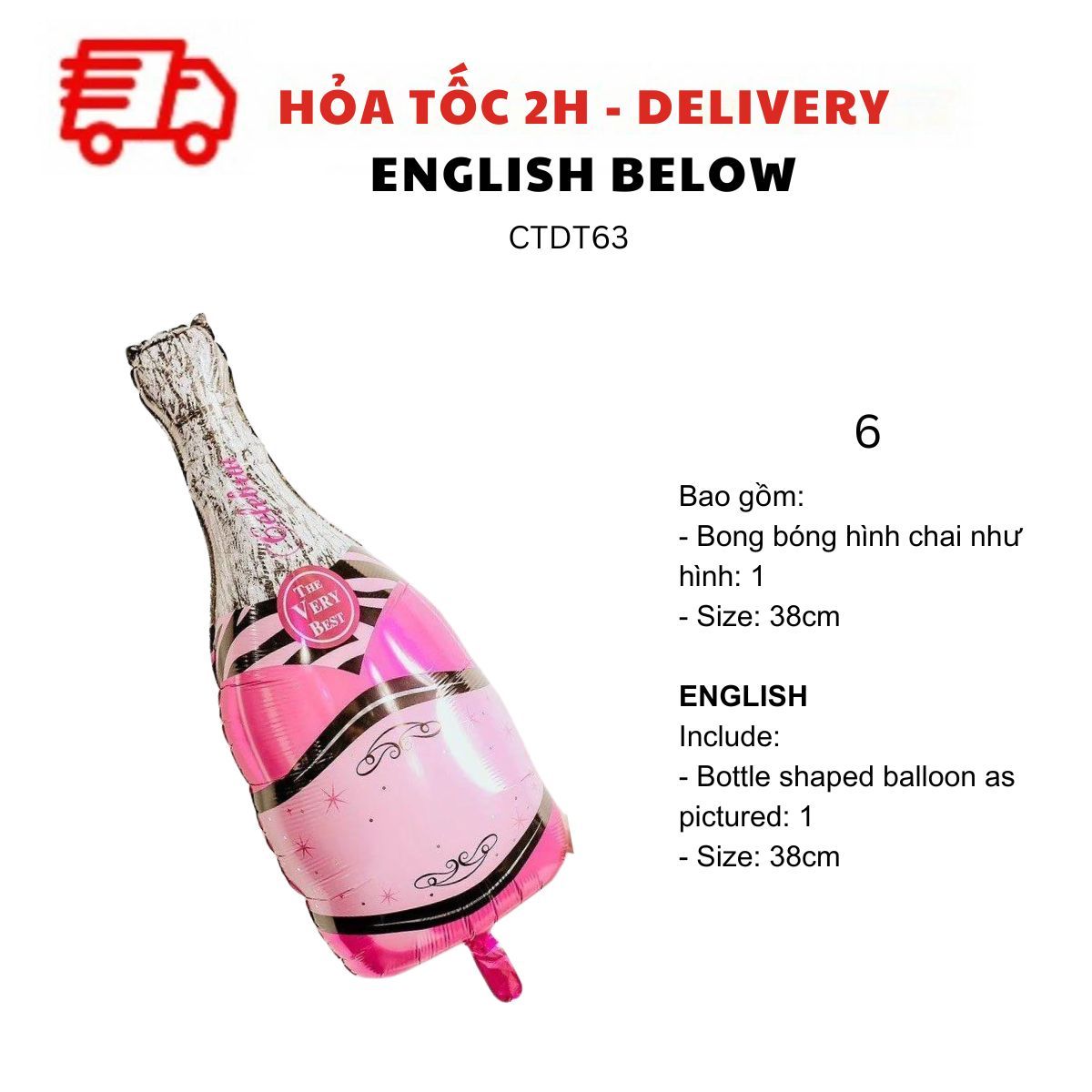 - Bong bóng hình chai như hình size 38cm: 1