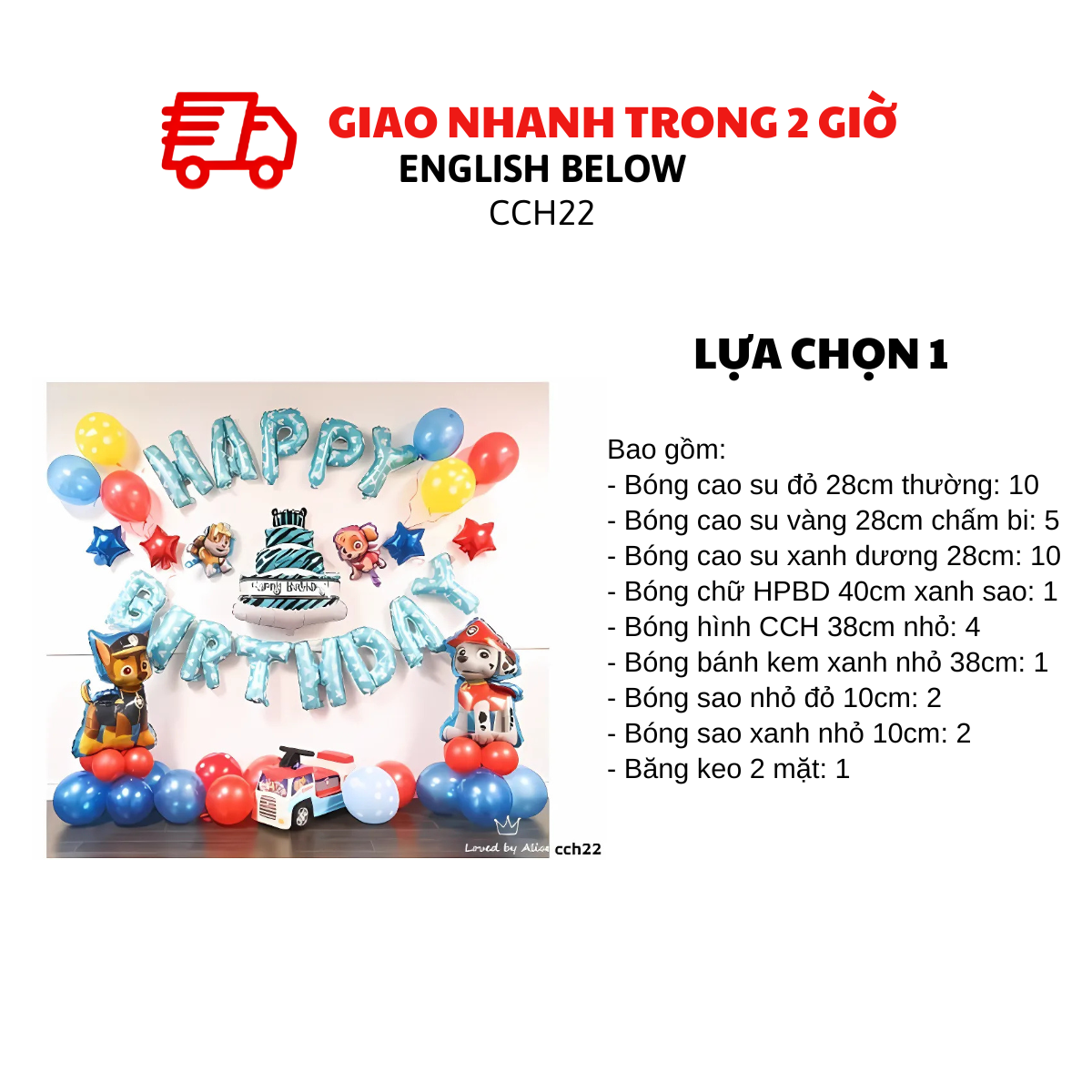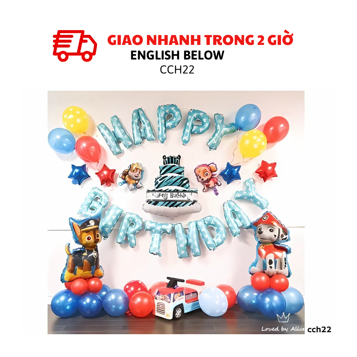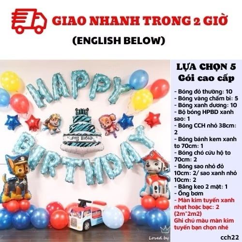 Mang đến không gian sinh nhật sôi động với bộ bong bóng Paw Patrol xanh đỏ, nổi bật với hình ảnh các nhân vật và cụm bóng rực rỡ, tạo điểm nhấn ấn tượng cho bàn tiệc, backdrop hay cổng chào. Chất liệu an toàn, bền đẹp, dễ trang trí, phù hợp cho mọi bữa tiệc của bé.