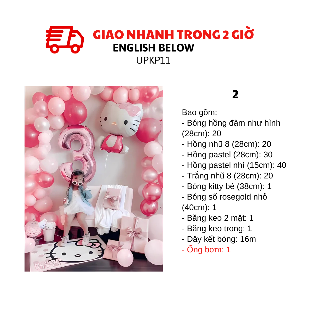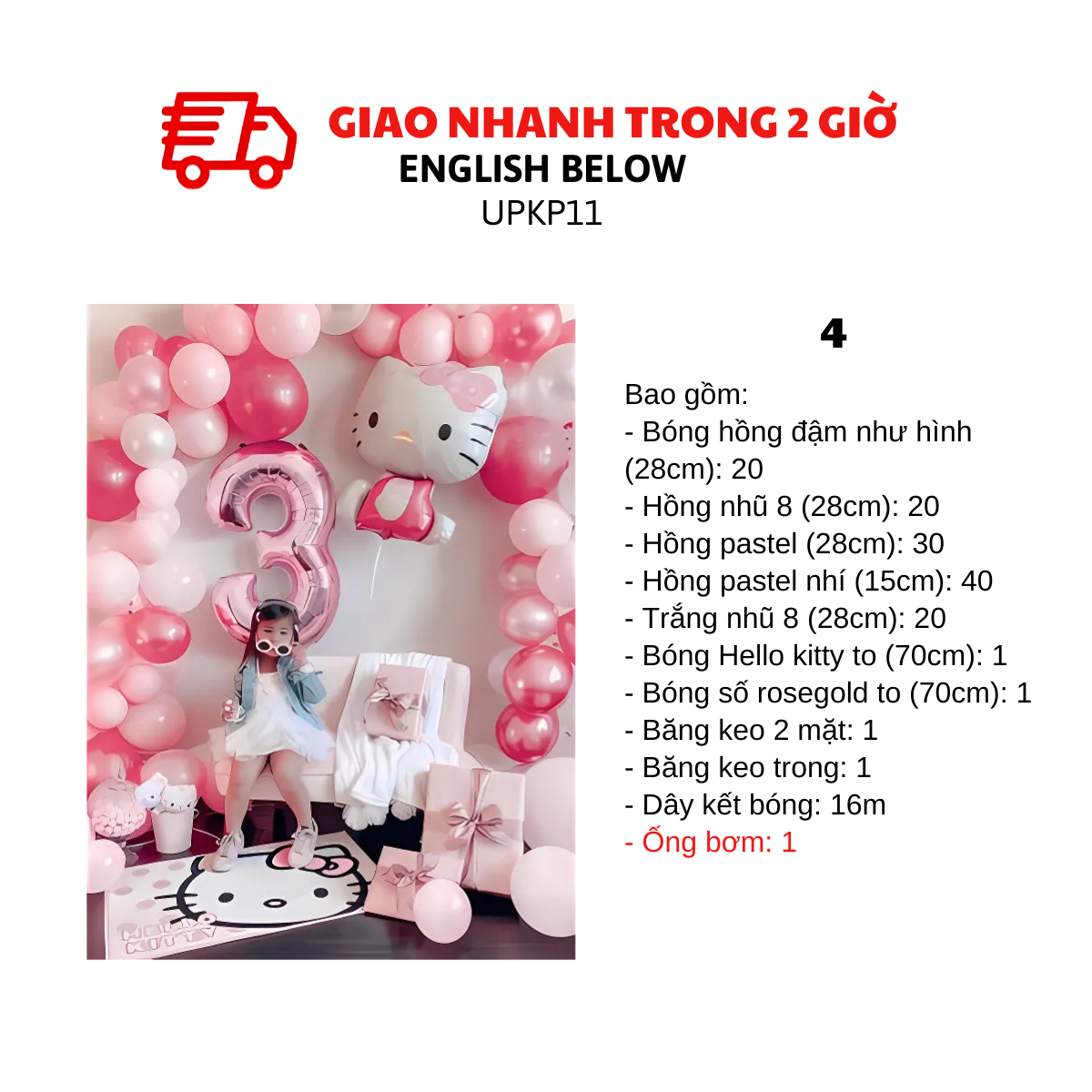 LỰA CHỌN 3: Như lựa chọn 1, nhưng bóng hello kitty và bóng số từ size nhỏ đổi qua size to như hình