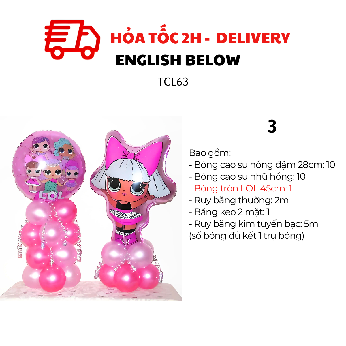 BỘ BONG BÓNG TRANG TRÍ SINH NHẬT CHỦ ĐỀ LOL SURPRISE TCL63