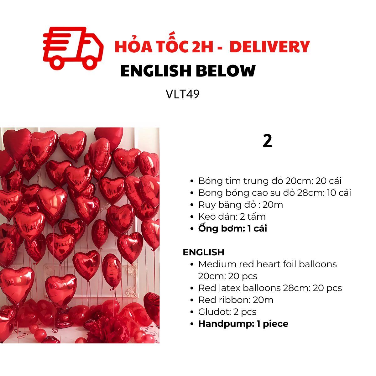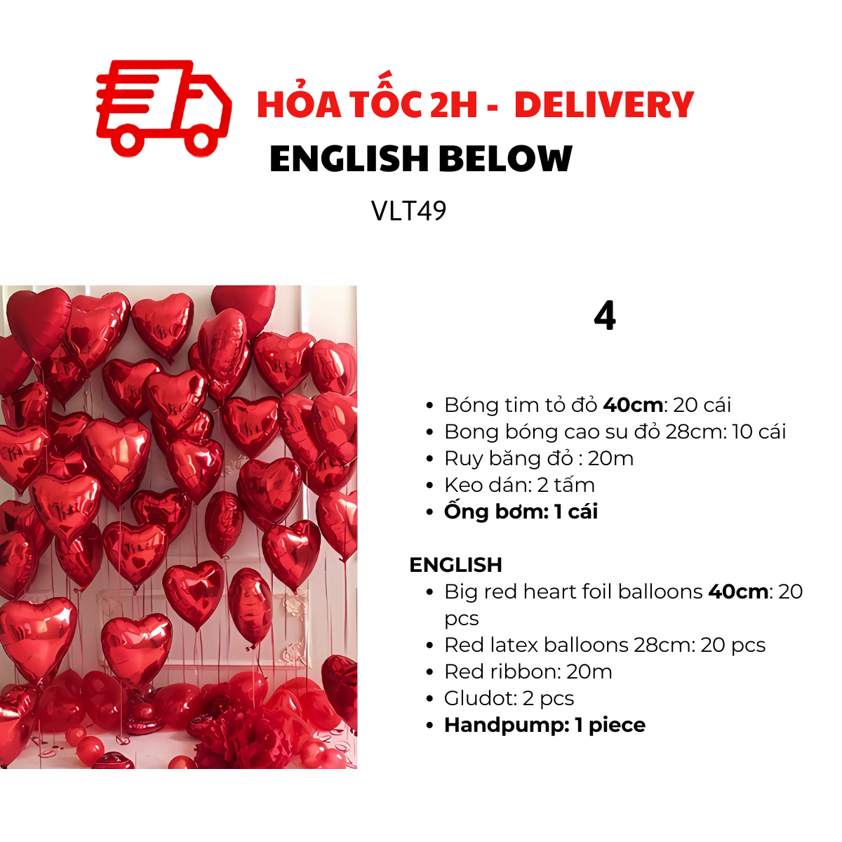 - Bóng tim trung đỏ 20cm: 20 cái