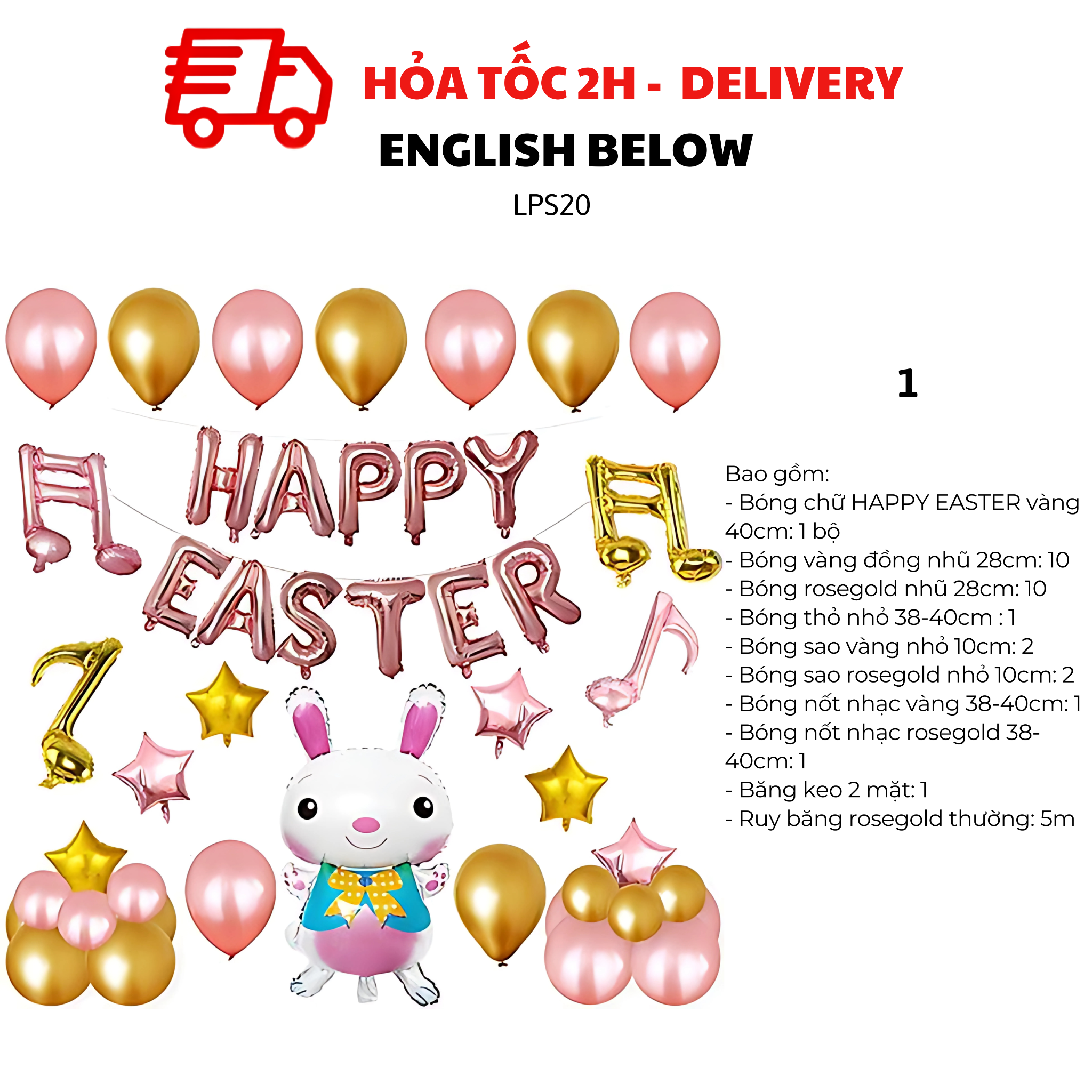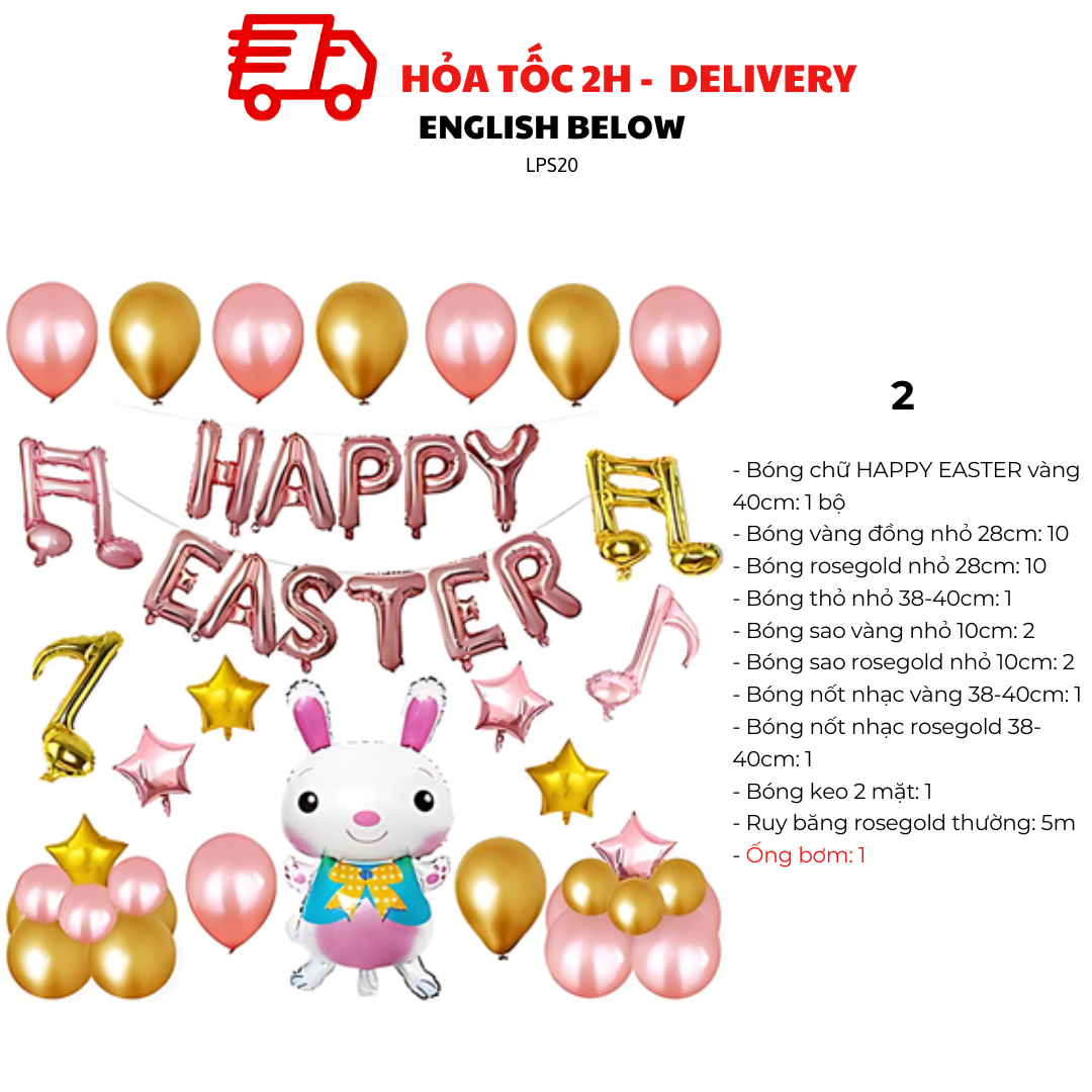 Bộ Bóng Chữ Happy Easter Và Bóng Thỏ Trang Trí Lễ Phục Sinh LPS20