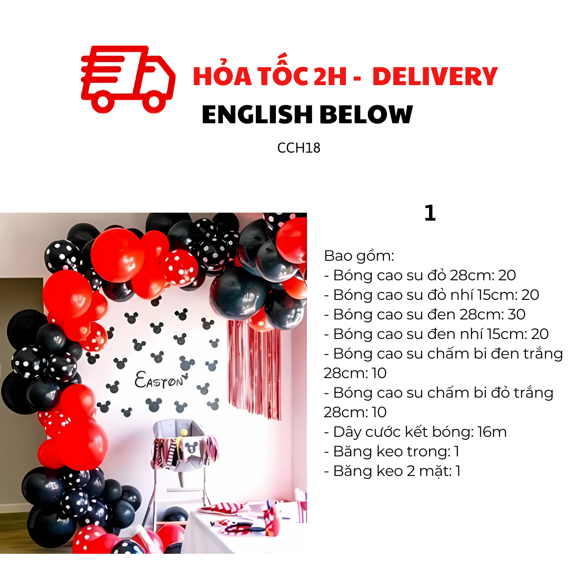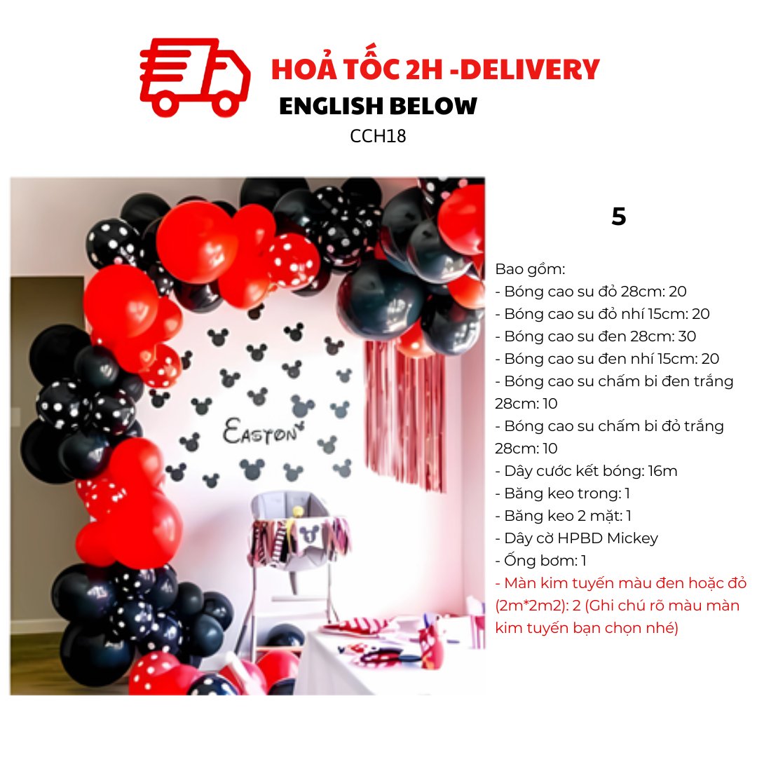 Bộ Bóng Đen Đỏ Chuột Mickey – Điểm Nhấn Hoàn Hảo Cho Bữa Tiệc