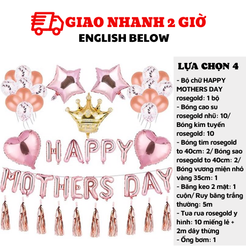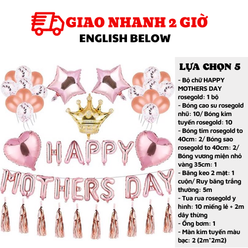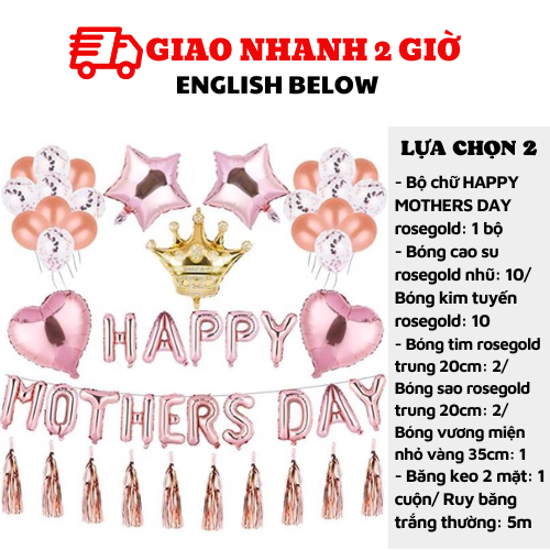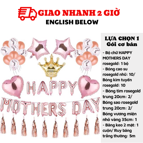 - Bộ chữ HAPPY MOTHERS DAY rosegold: 1 bộ