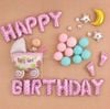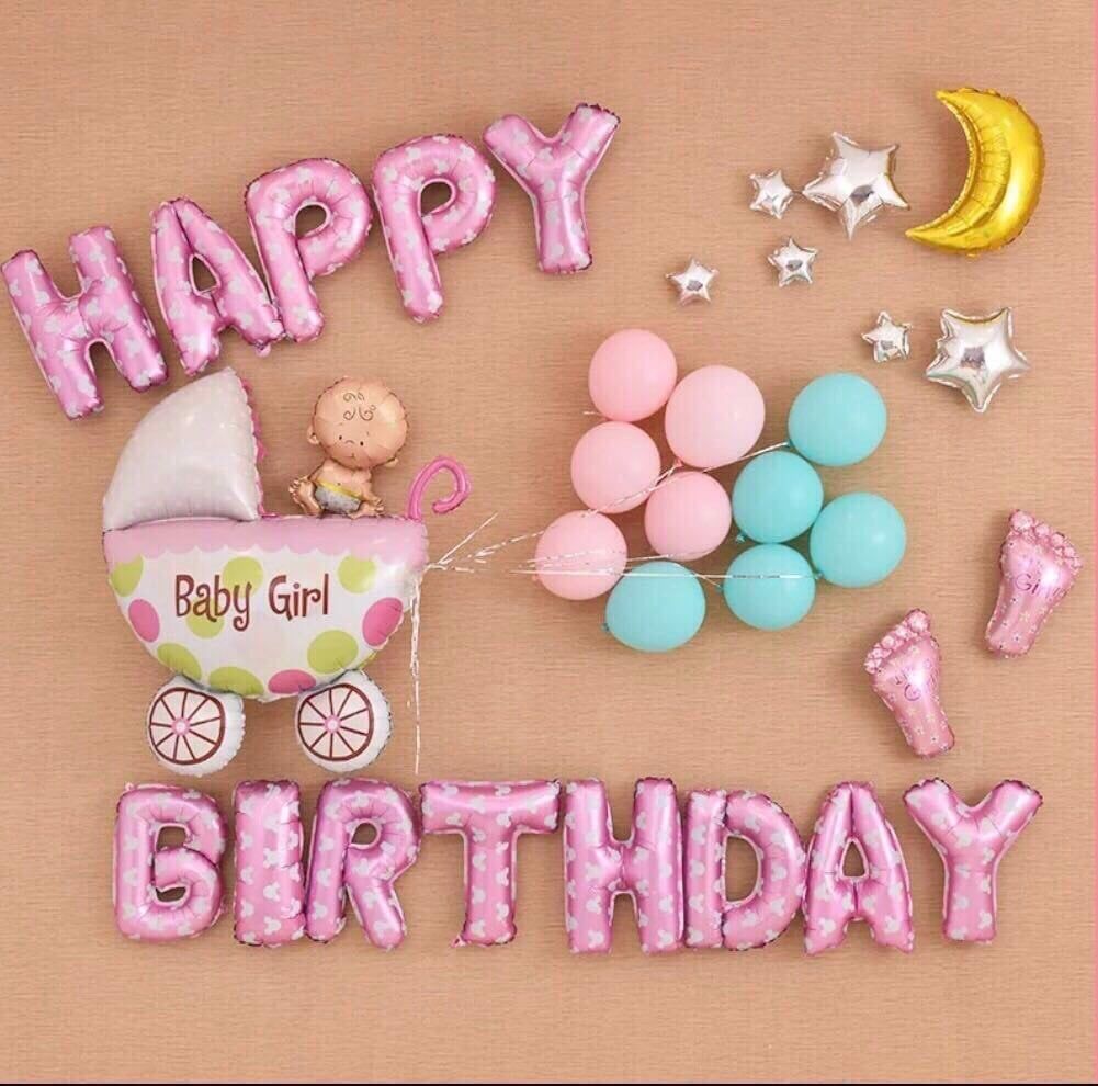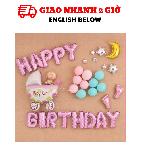 - Pink HPBD foil balloon: 1 set/ Big 70cm baby cart foil balloon: 1