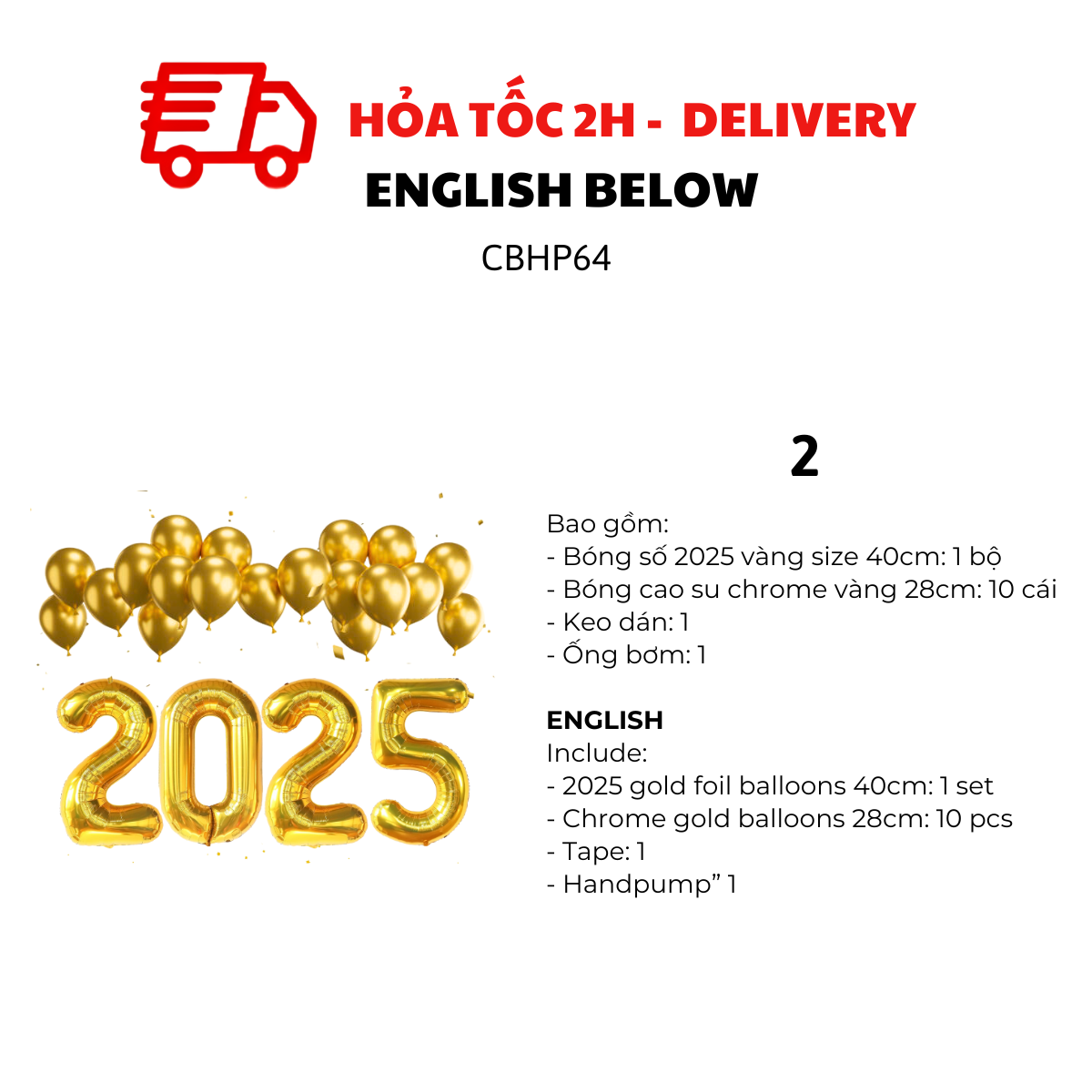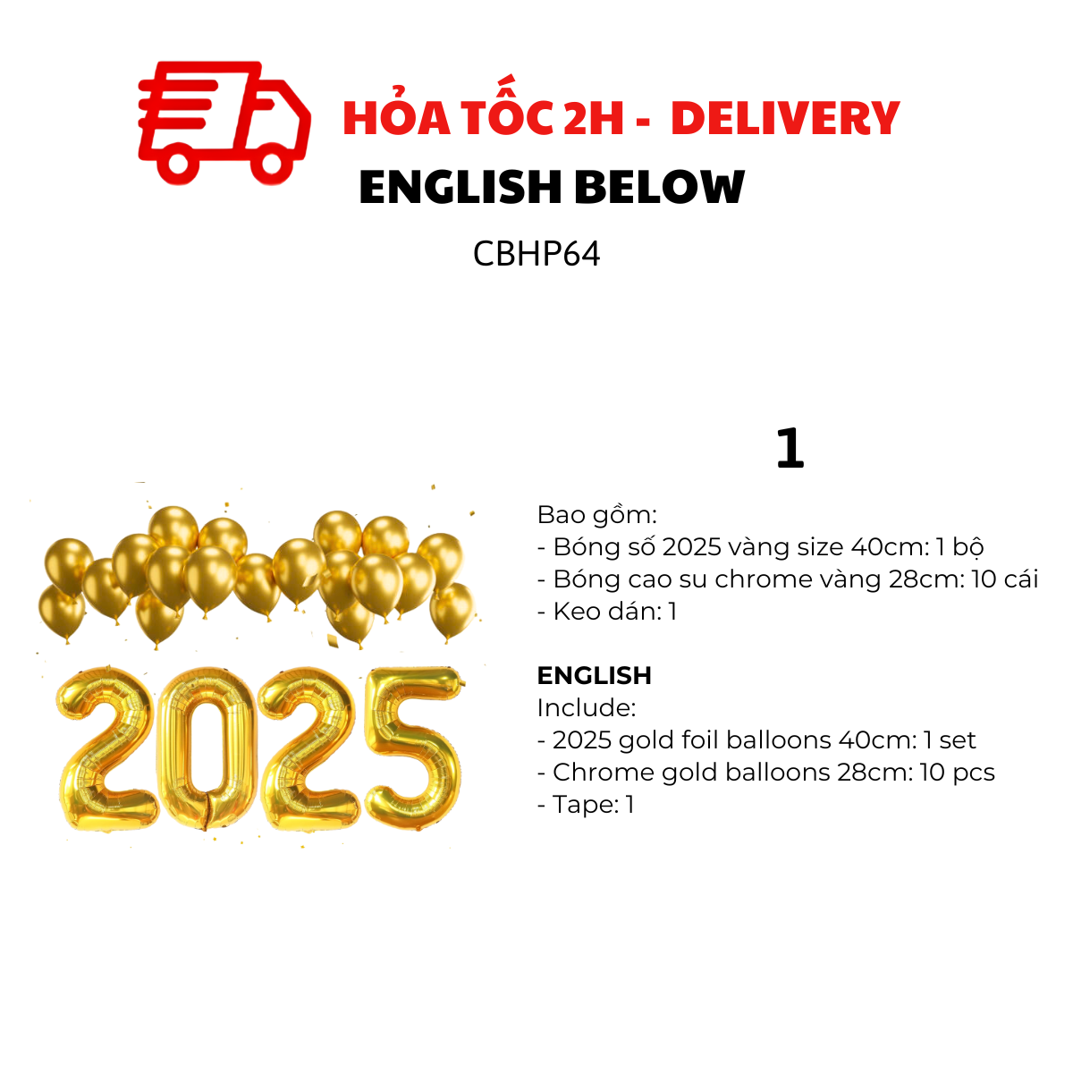 - Bóng số 2025 vàng size 40cm: 1 bộ
