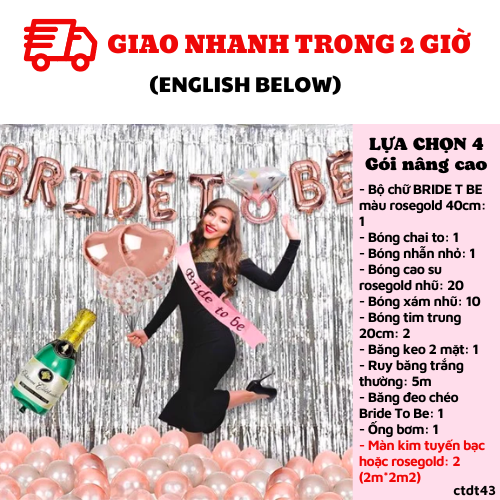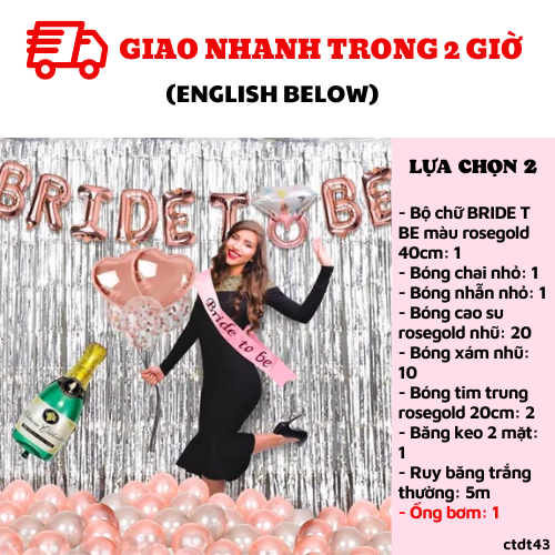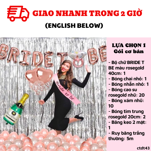 - Bộ chữ BRIDE T BE màu rosegold 40cm: 1