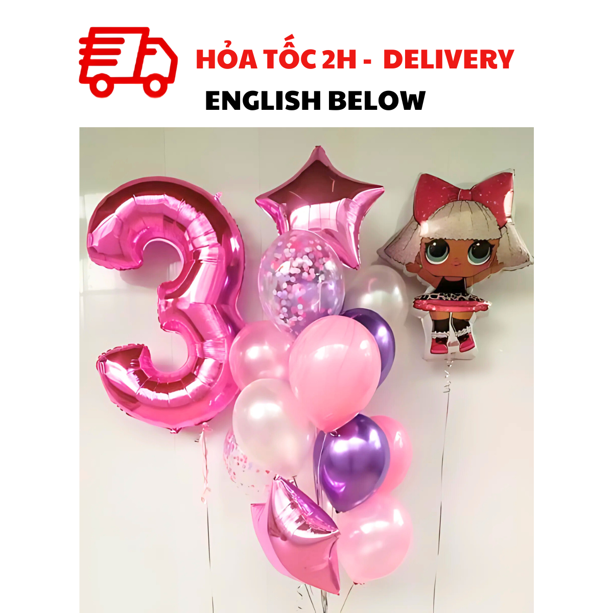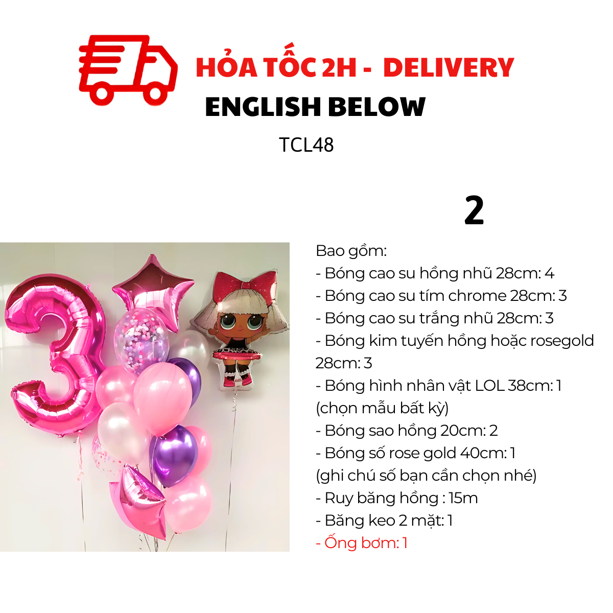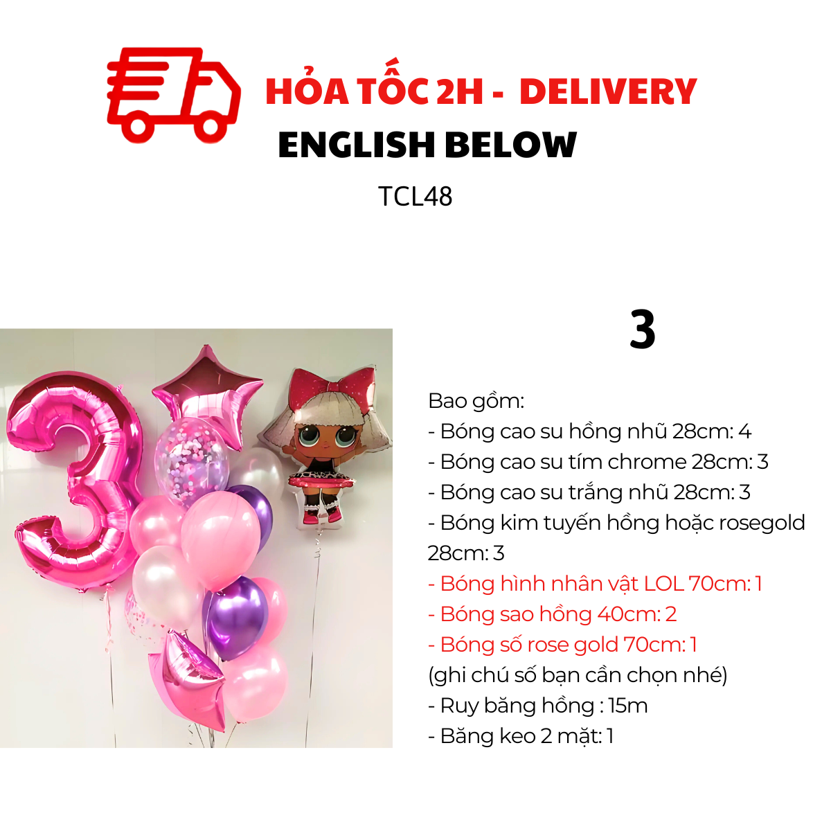 - Bóng kim tuyến hồng hoặc rosegold 28cm: 3