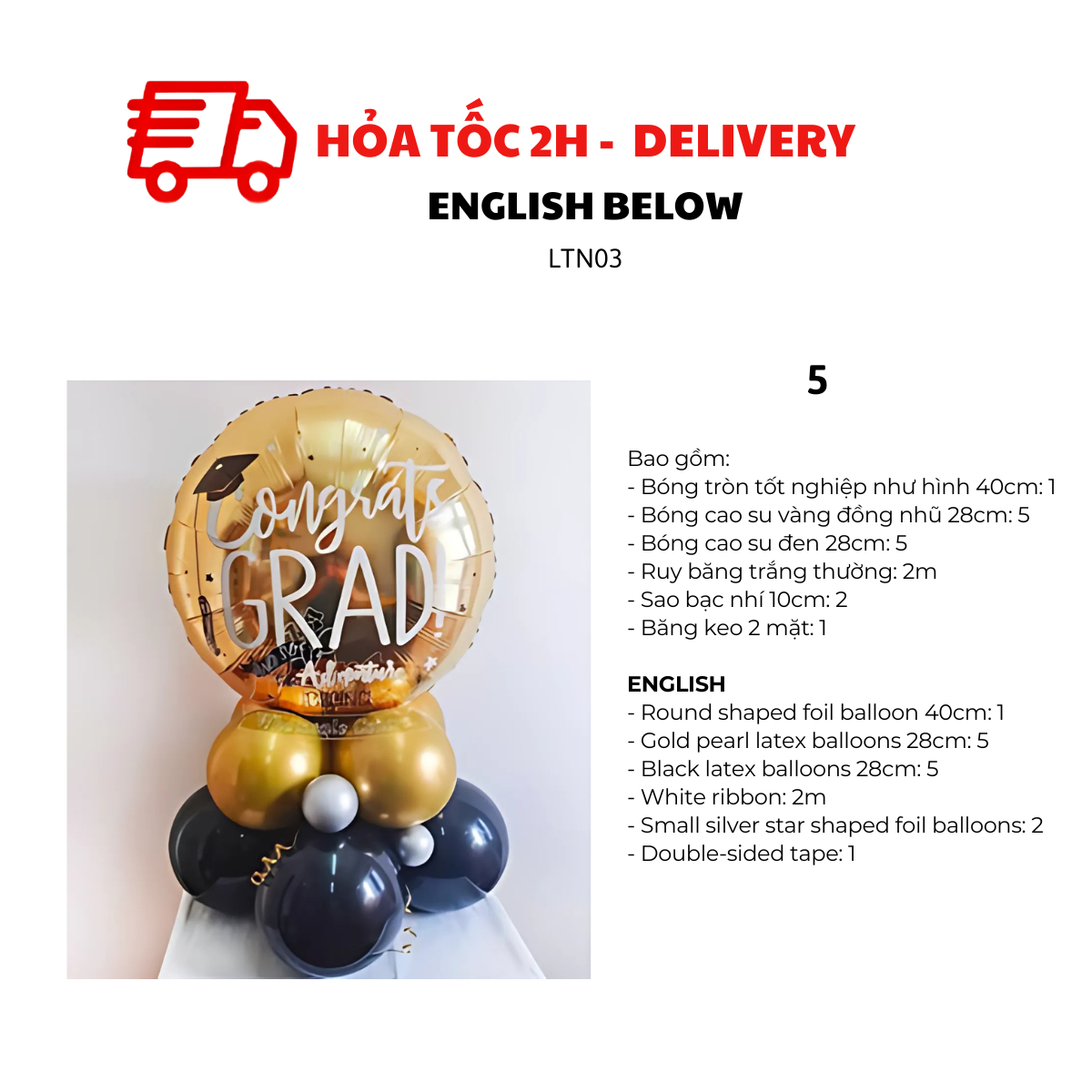 - Bóng tròn tốt nghiệp như hình 40cm: 2