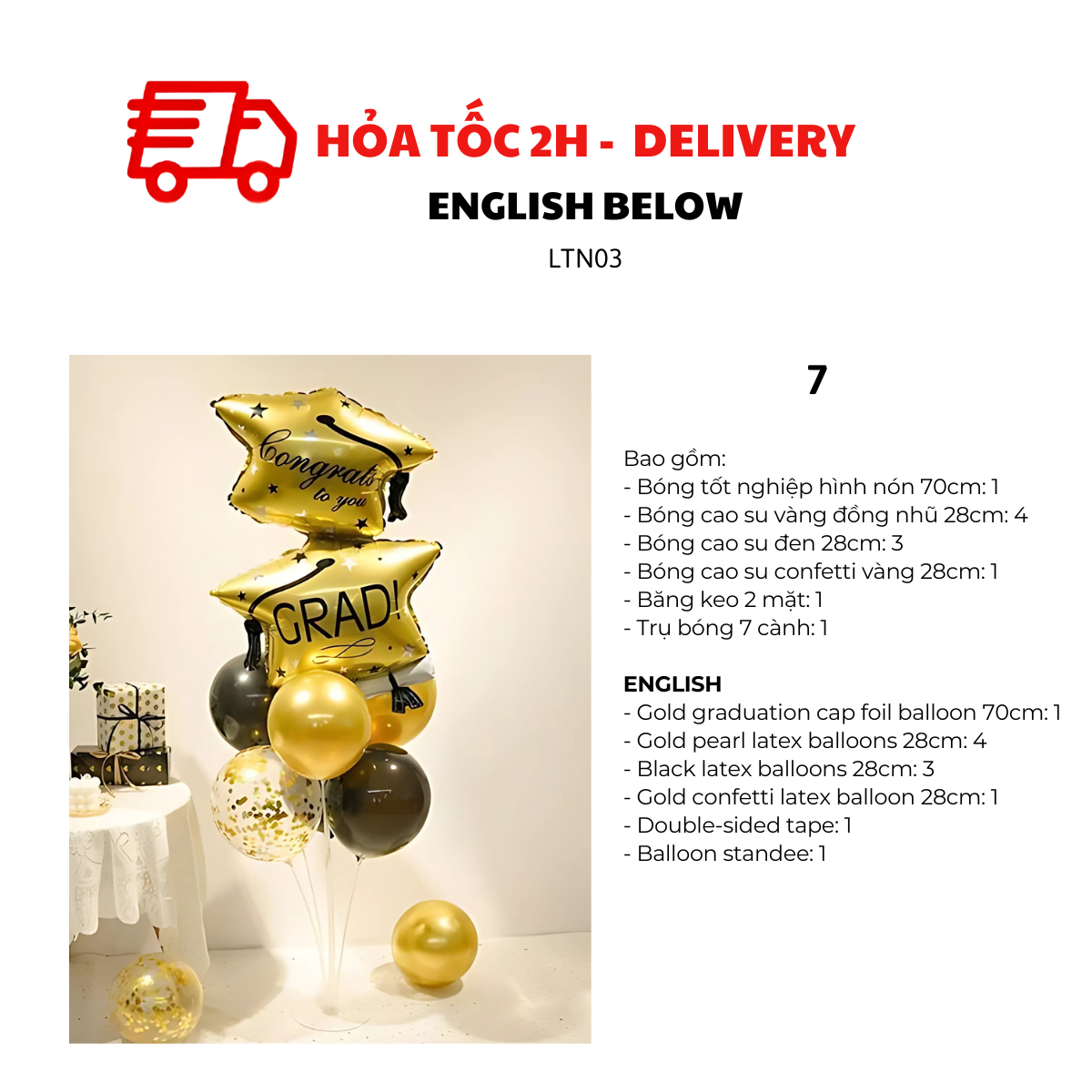 - Bóng tốt nghiệp hình nón 70cm: 1