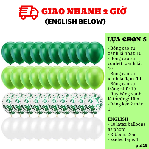 - Bóng cao su kim tuyến xanh lá: 5