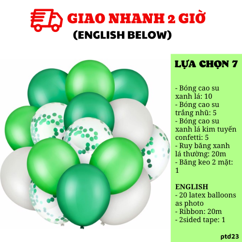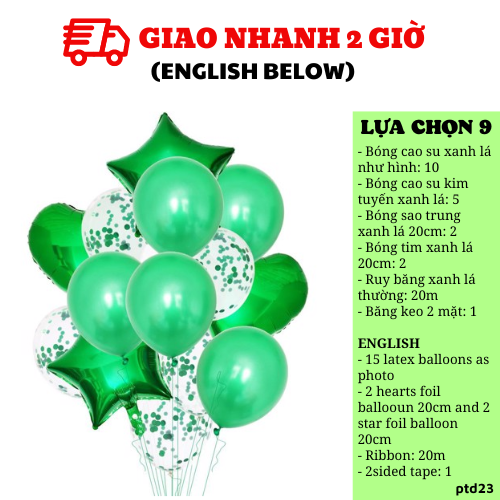 - Bóng tim xanh lá 20cm: 2