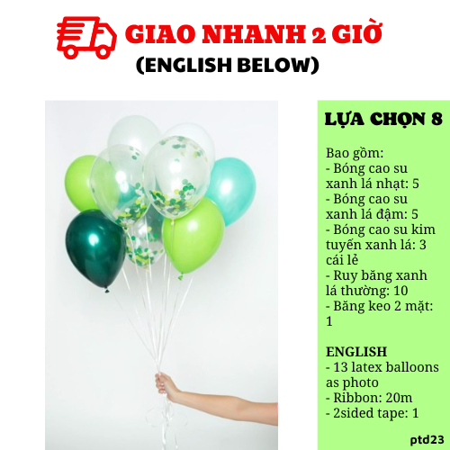 - Bóng cao su kim tuyến xanh lá: 3 cái lẻ