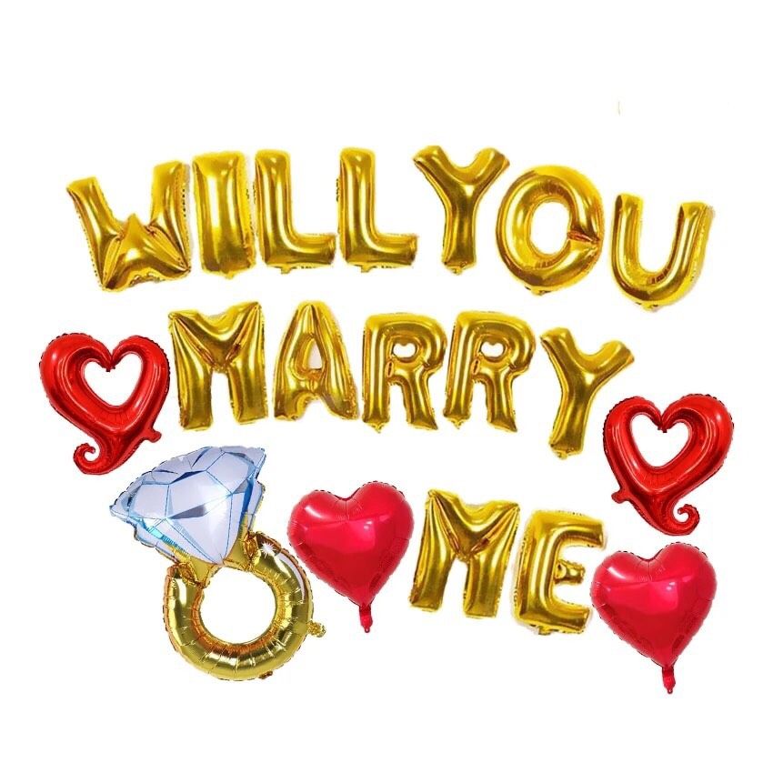 1. 40cm gold letter foil balloons "WILL YOU MARRY ME": 1 set
