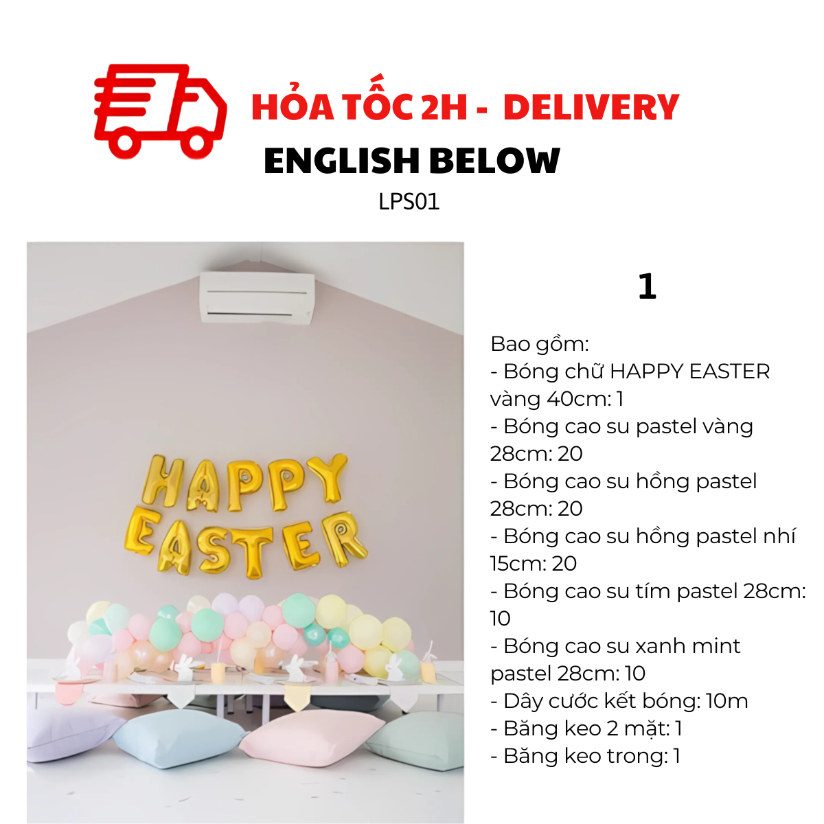 Dễ dàng trang trí tại nhà, phù hợp cho tiệc Phục Sinh cùng gia đình, trường học, nhà thờ hoặc các sự kiện lễ hội. Và khi đi kèm với ống bơm, việc trang trí sẽ trở nên dễ dàng hơn.
