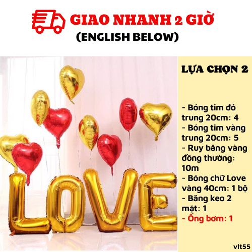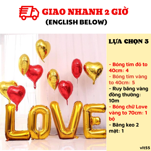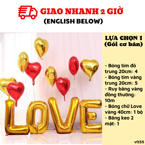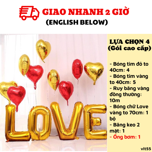 - Bóng chữ Love vàng 40cm: 1 bộ