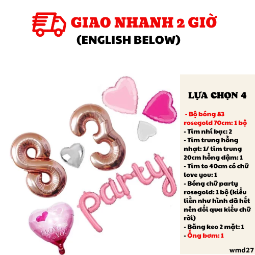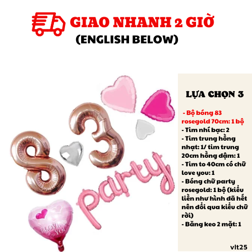 - Bóng chữ party rosegold: 1 bộ (kiểu liền như hình đã hết nên đổi qua kiểu chữ rời)