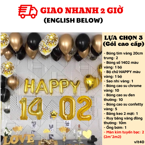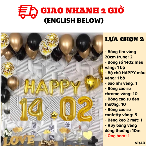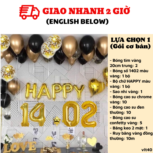 BỘ BÓNG HAPPY 14.02 MÀU VÀNG TRANG TRÍ VALENTINE VLT40