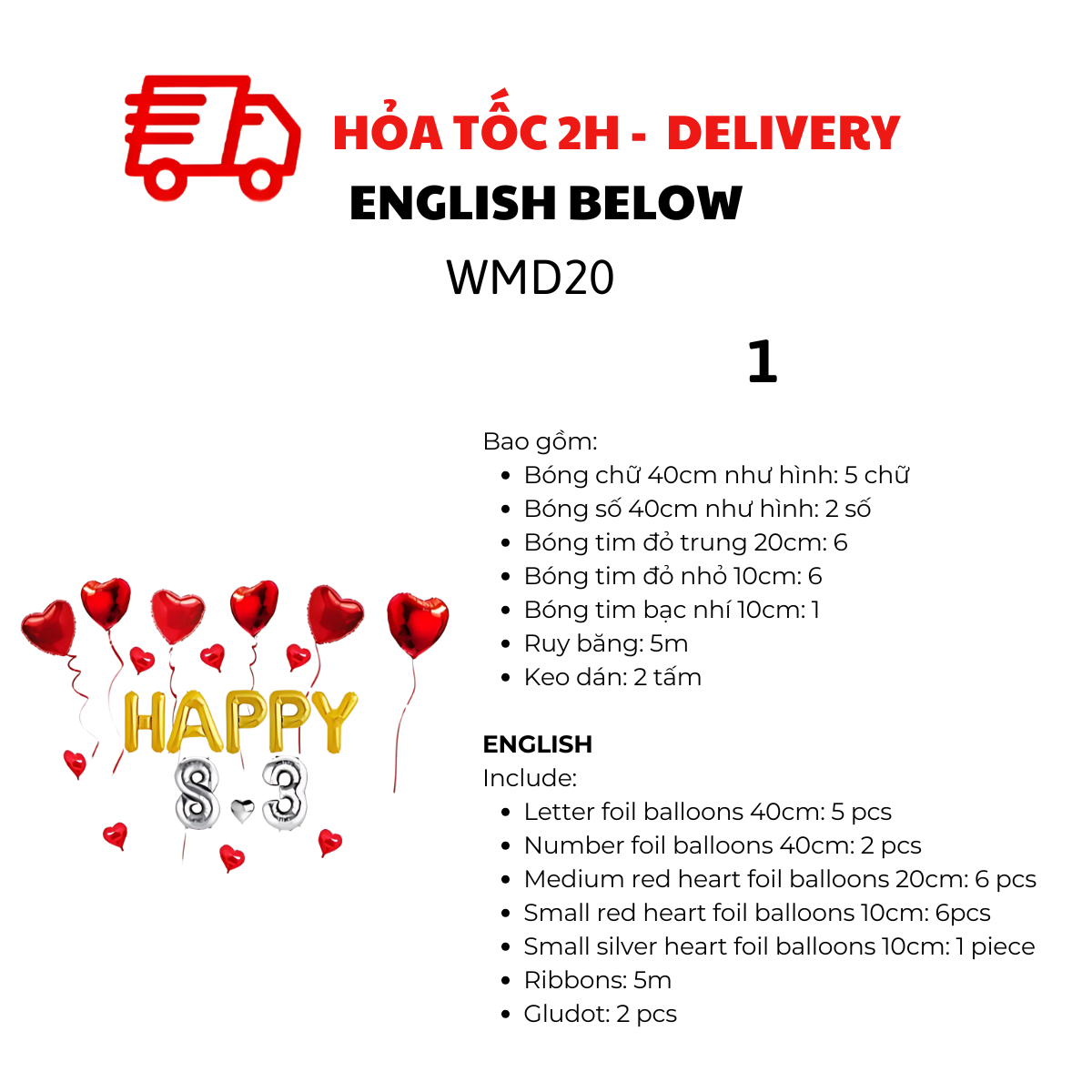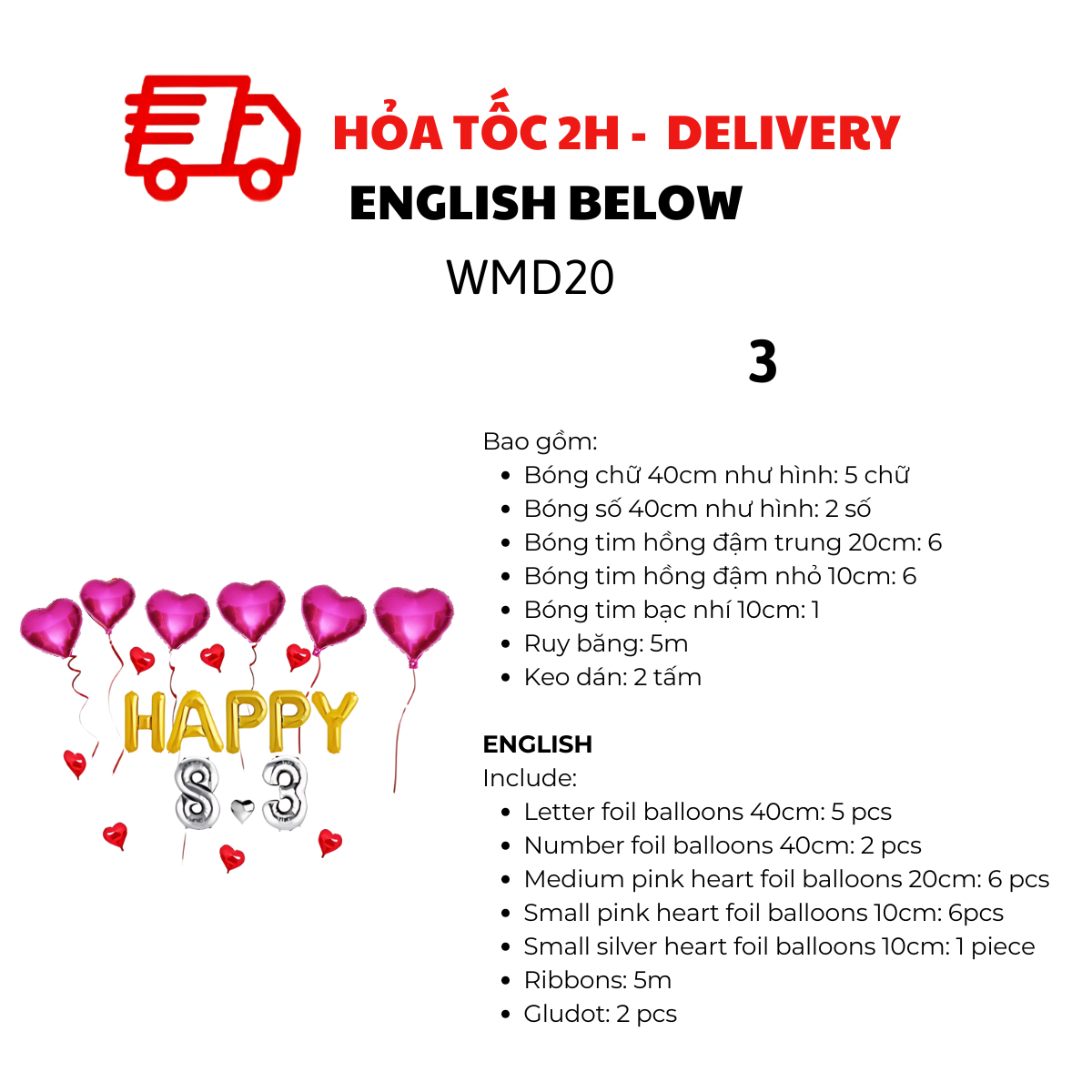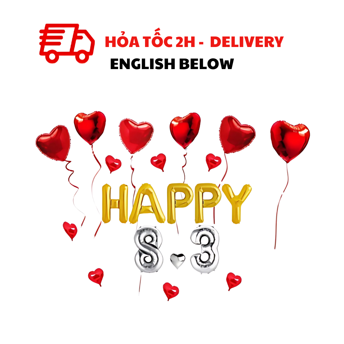 BỘ BÓNG HAPPY 8-3, BÓNG HÌNH TRÁI TIM TRANG TRÍ NGÀY QUỐC TẾ PHỤ NỮ 8/3 NHIỀU MÀU WMD20