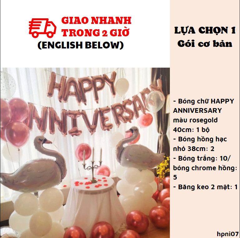 1. Bóng chữ HAPPY ANNIVERSARY màu rosegold 40cm: 1 bộ