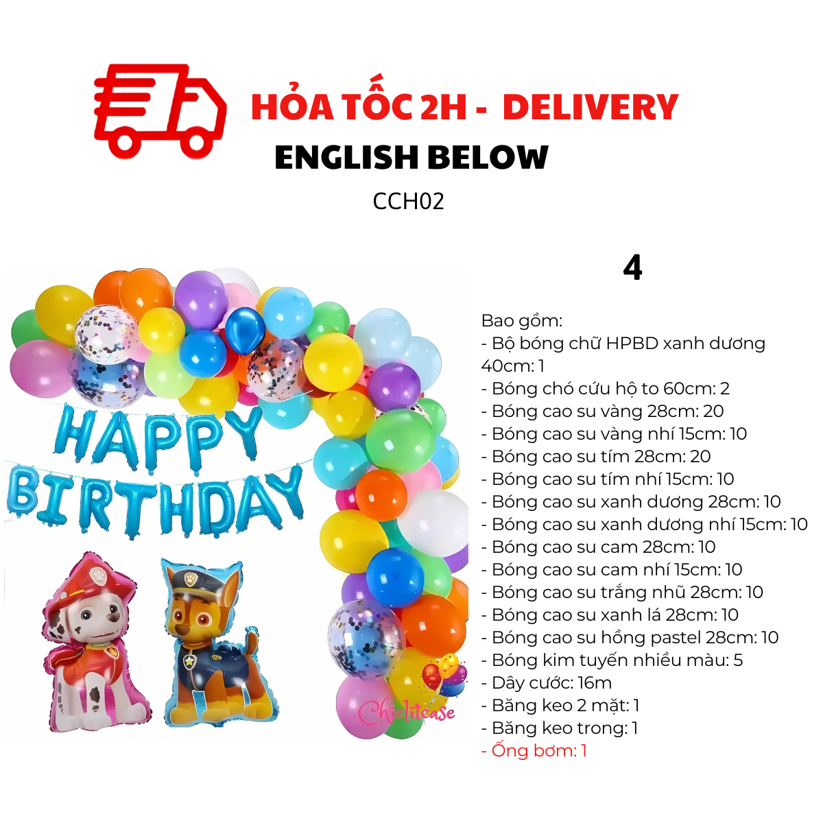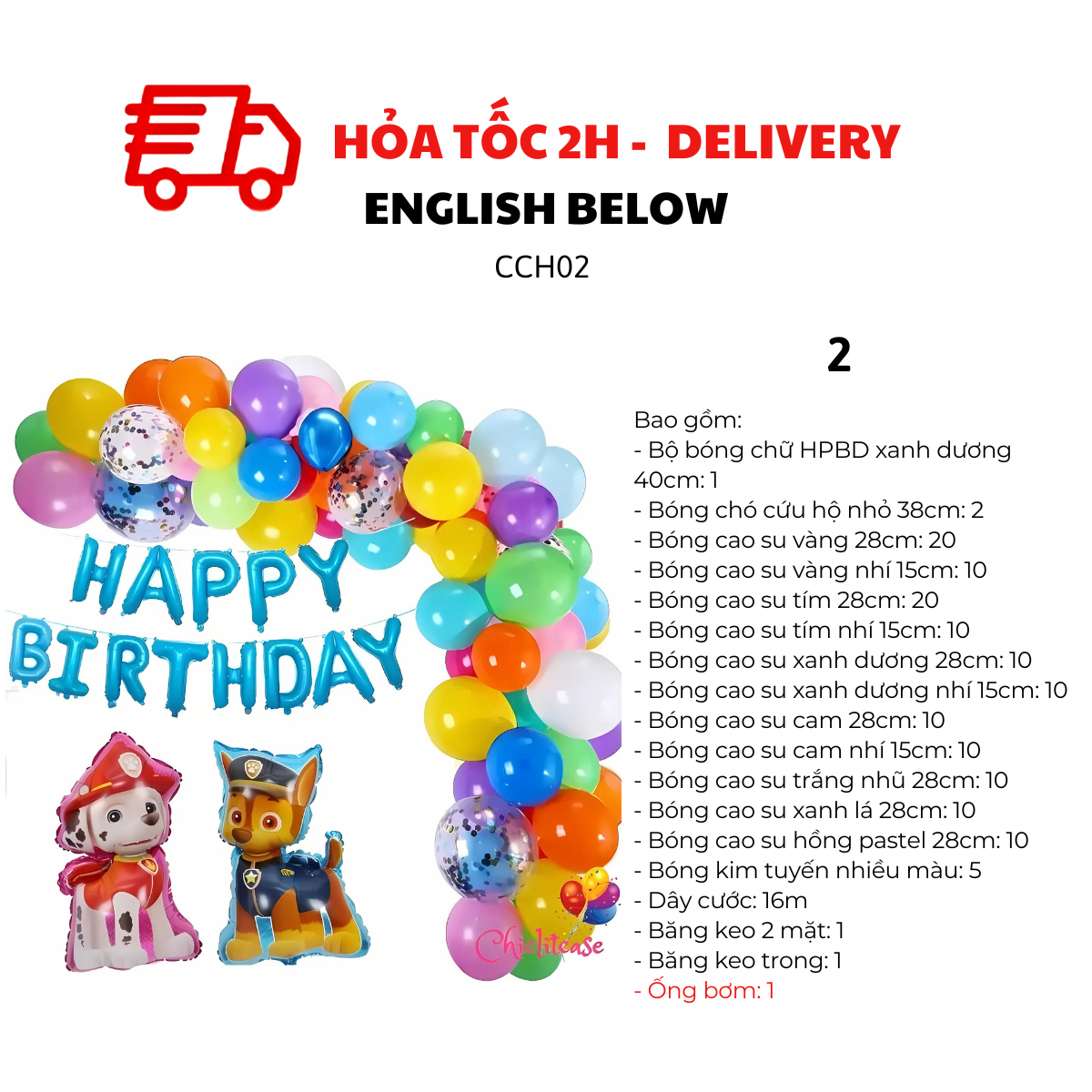 Bộ Dây Bóng Happy Birthday Nhiều Màu Chủ Đề Chó Cứu Hộ là một phụ kiện trang trí với những sắc màu rực rỡ, bao gồm đầy đủ các chi tiết từ bóng chữ Happy Birthday cho đến dây bóng cao su đủ màu cùng bộ đôi chú chó cứu hộ.