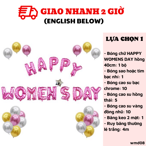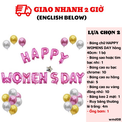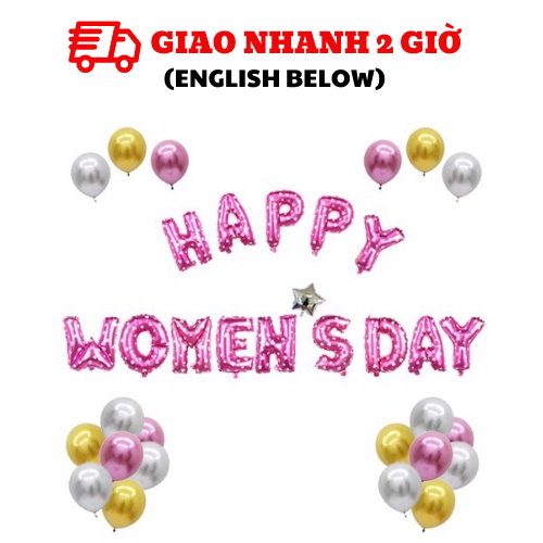- Bóng chữ HAPPY WOMENS DAY hồng 40cm: 1 bộ