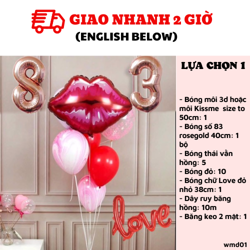 BỘ BÓNG HÌNH MÔI 3D, CHỮ LOVE MÀU HỒNG TRANG TRÍ NGÀY QUỐC TẾ PHỤ NỮ 8/3 WMD01