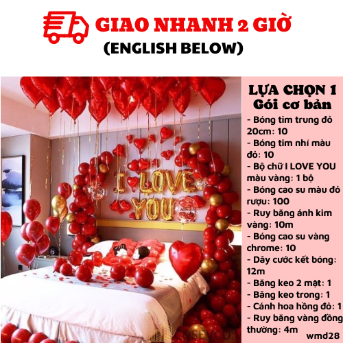 - Bộ chữ I LOVE YOU màu vàng: 1 bộ