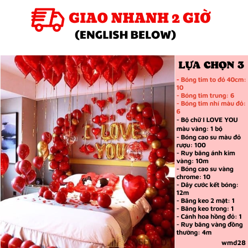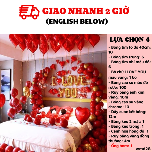 - Bóng tim to đỏ 40cm: 10/ Bóng tim trung: 6