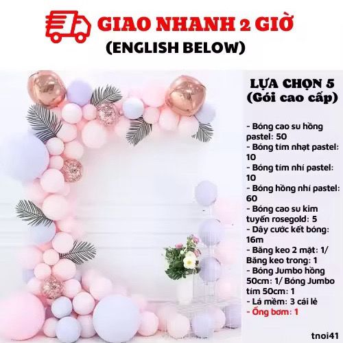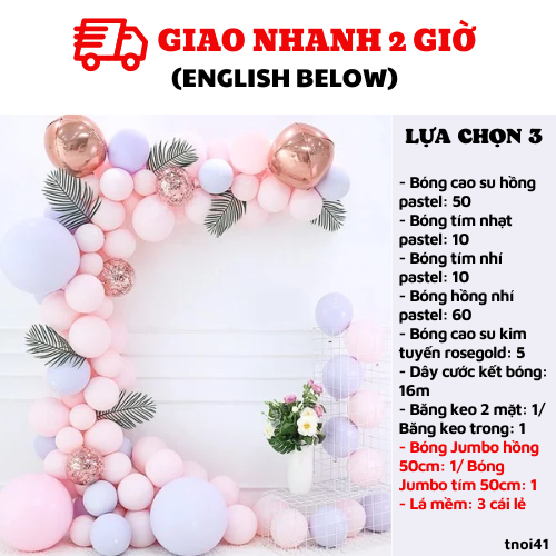 3. Bóng hồng nhí pastel: 60/ Bóng sao rosegold 40cm: 2