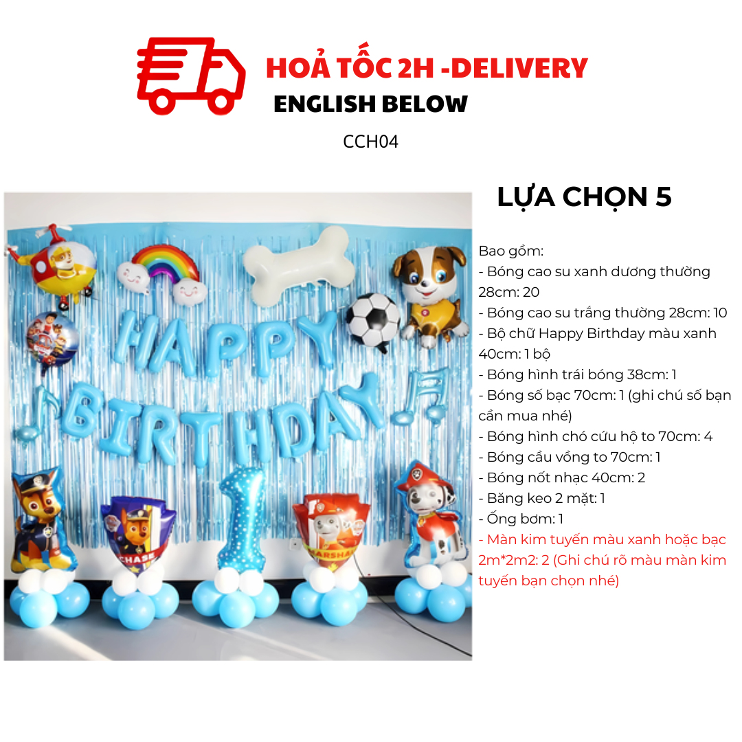 Bộ Bóng Paw Patrol Xanh – Không Gian Tiệc Sinh Nhật Hoành Tráng Cho Bé CCH04