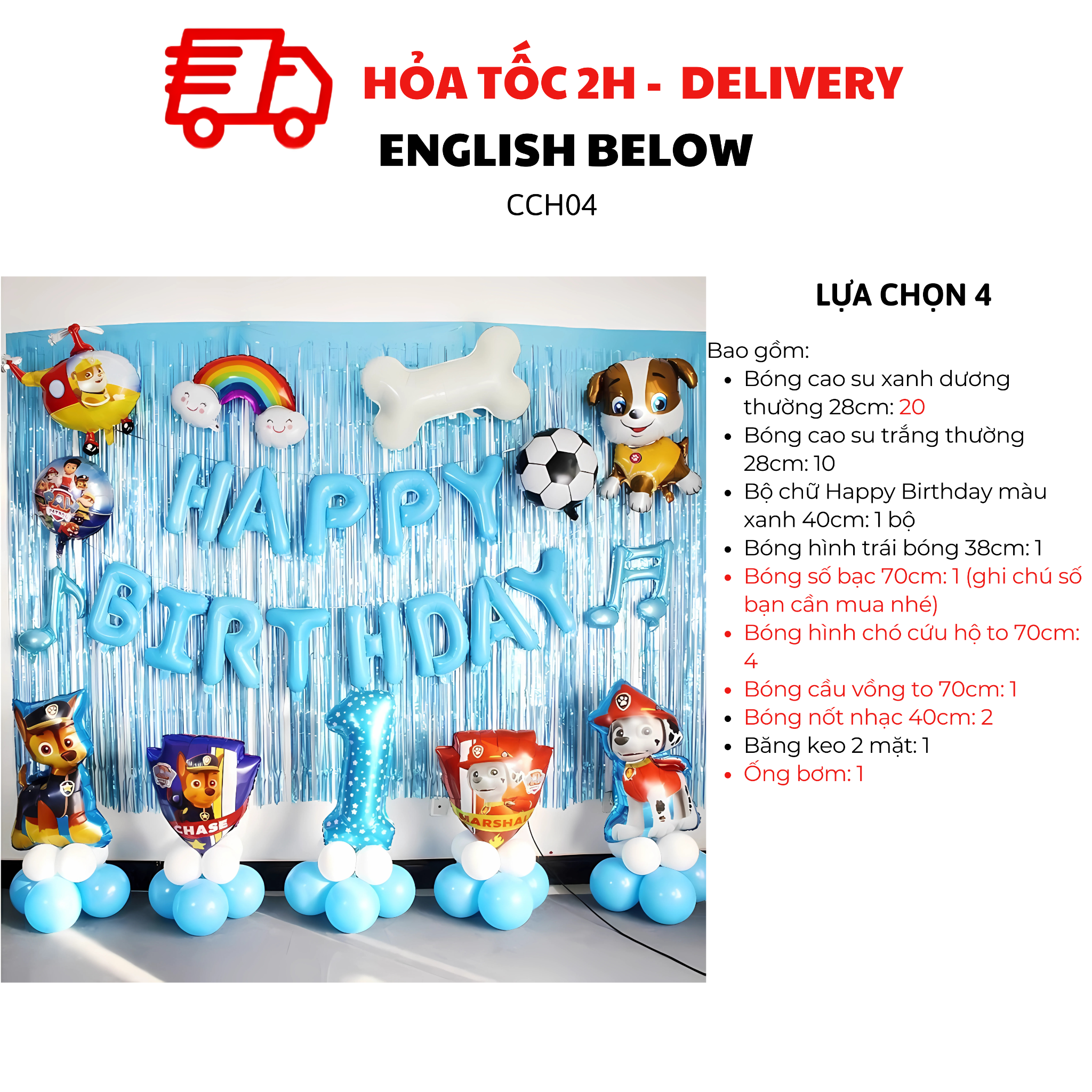 - Bóng số bạc 40cm: 1 (ghi chú số bạn cần mua nhé)