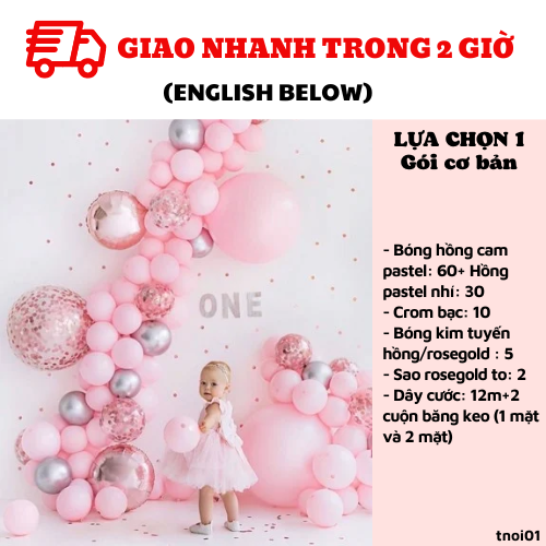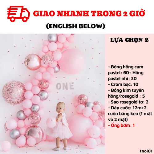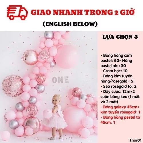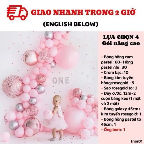 LỰA CHỌN 3: NHƯ LỰA CHỌN 1, NHƯNG THÊM 1 BÓNG GALAXY 45CM KIM TUYẾN ROSEGOLD VÀ 1 BÓNG HỒNG TO 45CM