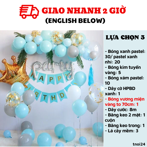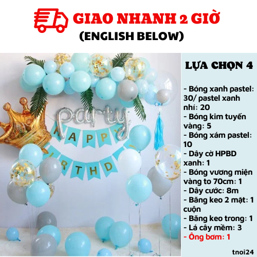 - Khách ở Hồ Chí Minh có thể gọi/chat với Shop khi có yêu cầu bơm khí helium bay.