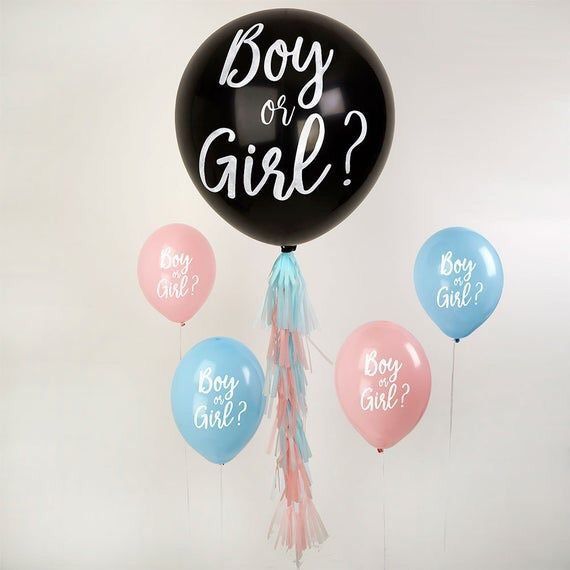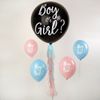 Boy or Girl – A giant 70cm black balloon with pink and blue tassel streamers, ready to create a thrilling burst of excitement as you reveal your baby’s gender.