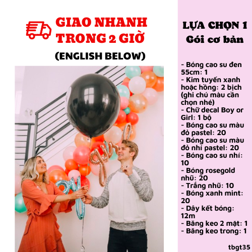 - Big black balloon 50cm: 1/ Confetti: 2 set pink or blue (pls note down your choise)