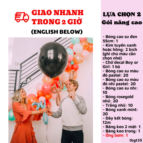- Khách ở HCM có thể gọi/chat với Shop khi có yêu cầu bơm khí helium bay.