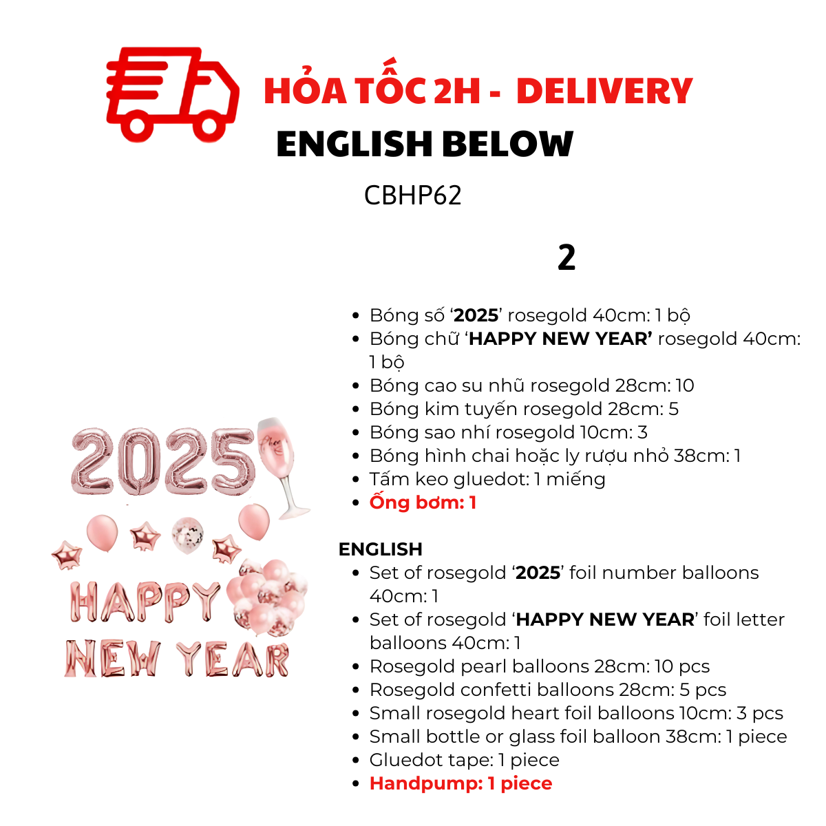- Bóng số ‘2025’ rosegold 40cm: 1 bộ