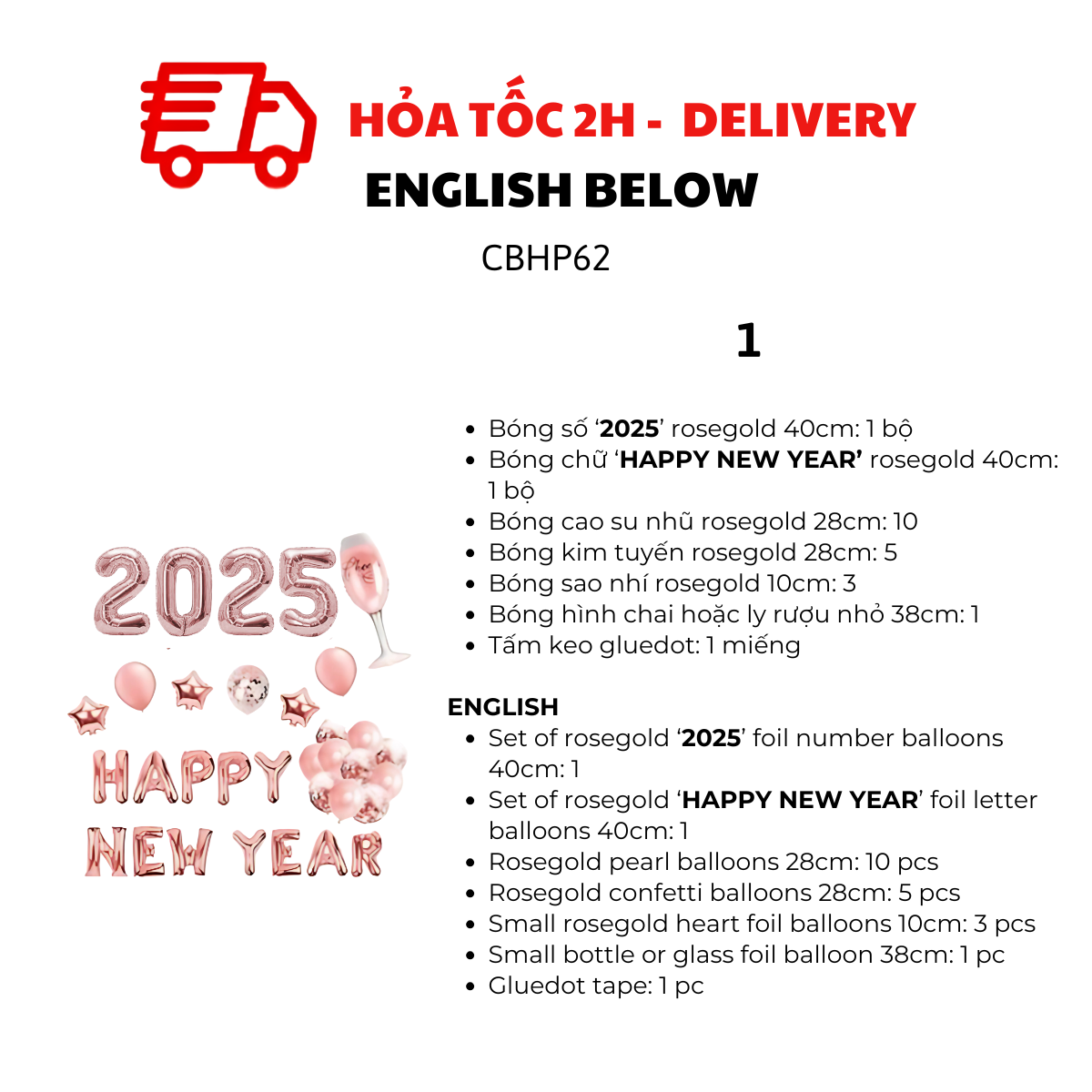 BỘ BÓNG TIỆC HAPPY NEW YEAR MÀU ROSEGOLD CBHP62