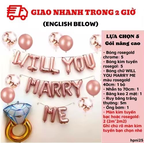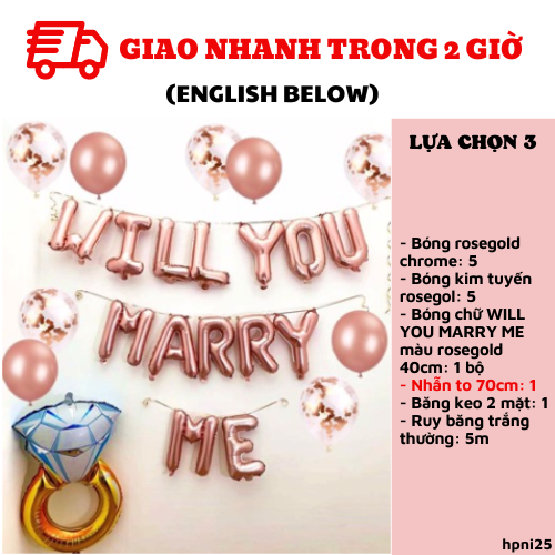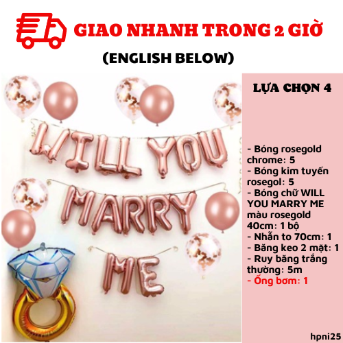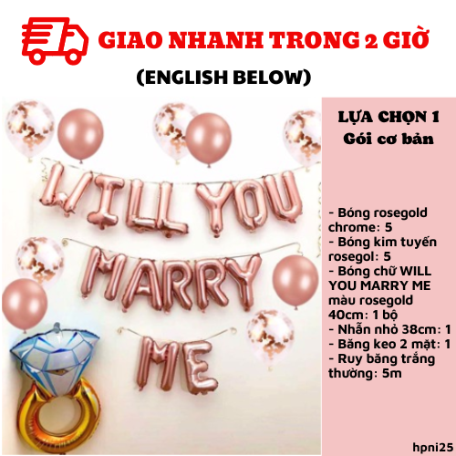 - Bóng chữ WILL YOU MARRY ME màu rosegold 40cm: 1 bộ