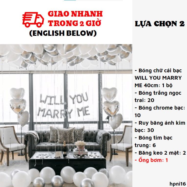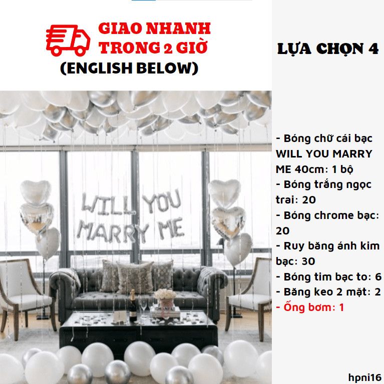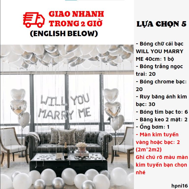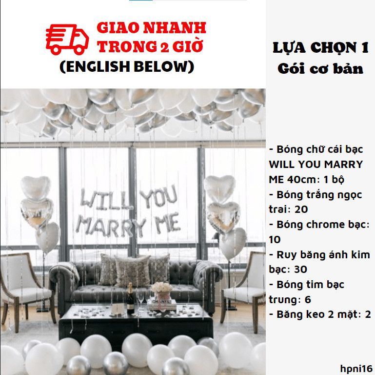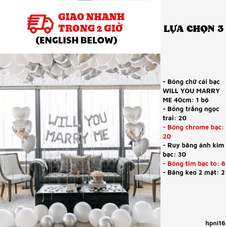1. Bóng chữ cái bạc WILL YOU MARRY ME 40cm: 1 bộ